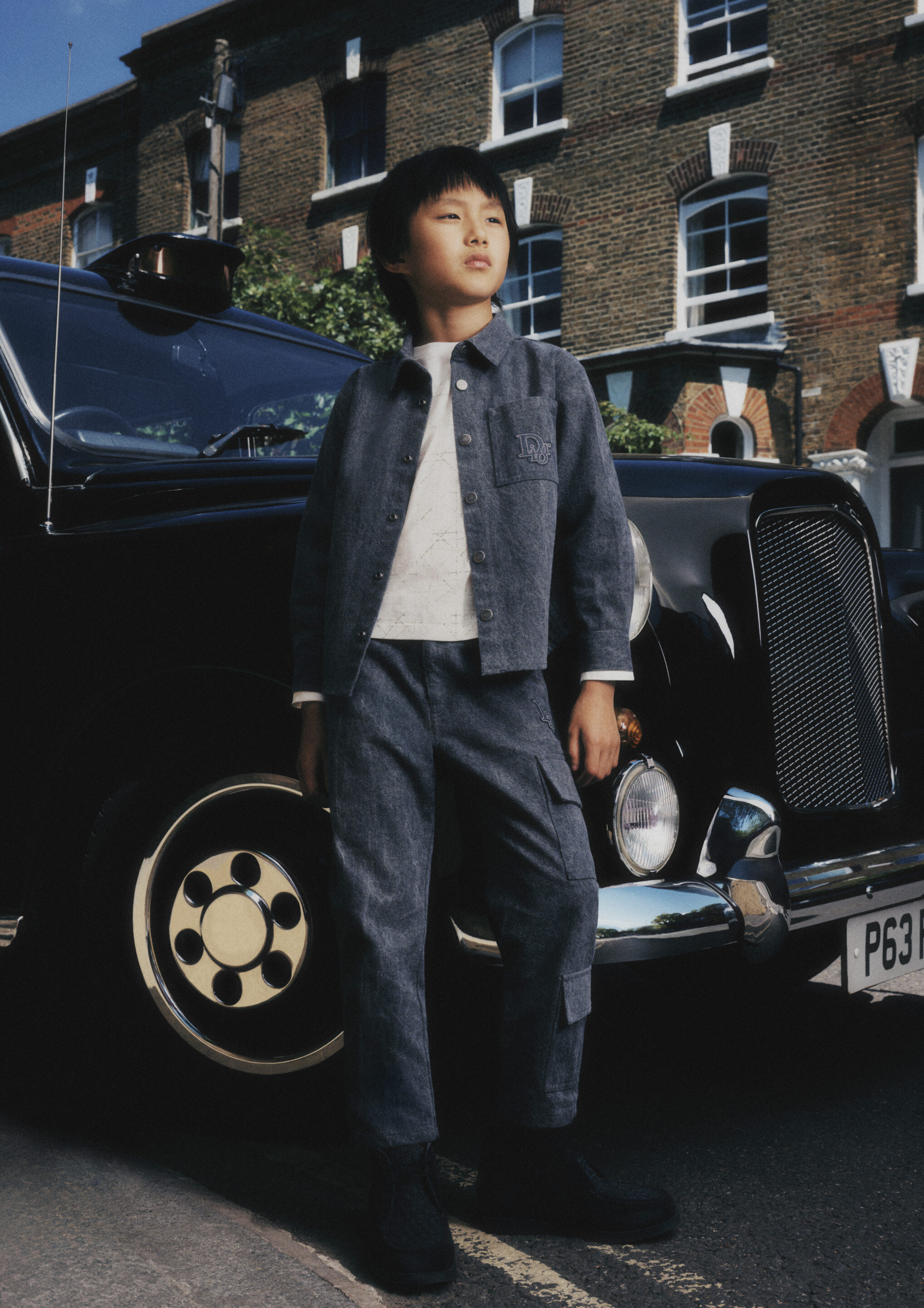 Le thème Diorling s’ouvre ainsi sur une escale outre-Manche : manteaux ceinturés, trenchsen gabardine, denim pastel ou tee-shirts brodés s’associent à des mailles enveloppantes et à une veste Bar en prince-de-galles, pour un supplément de style londonien.