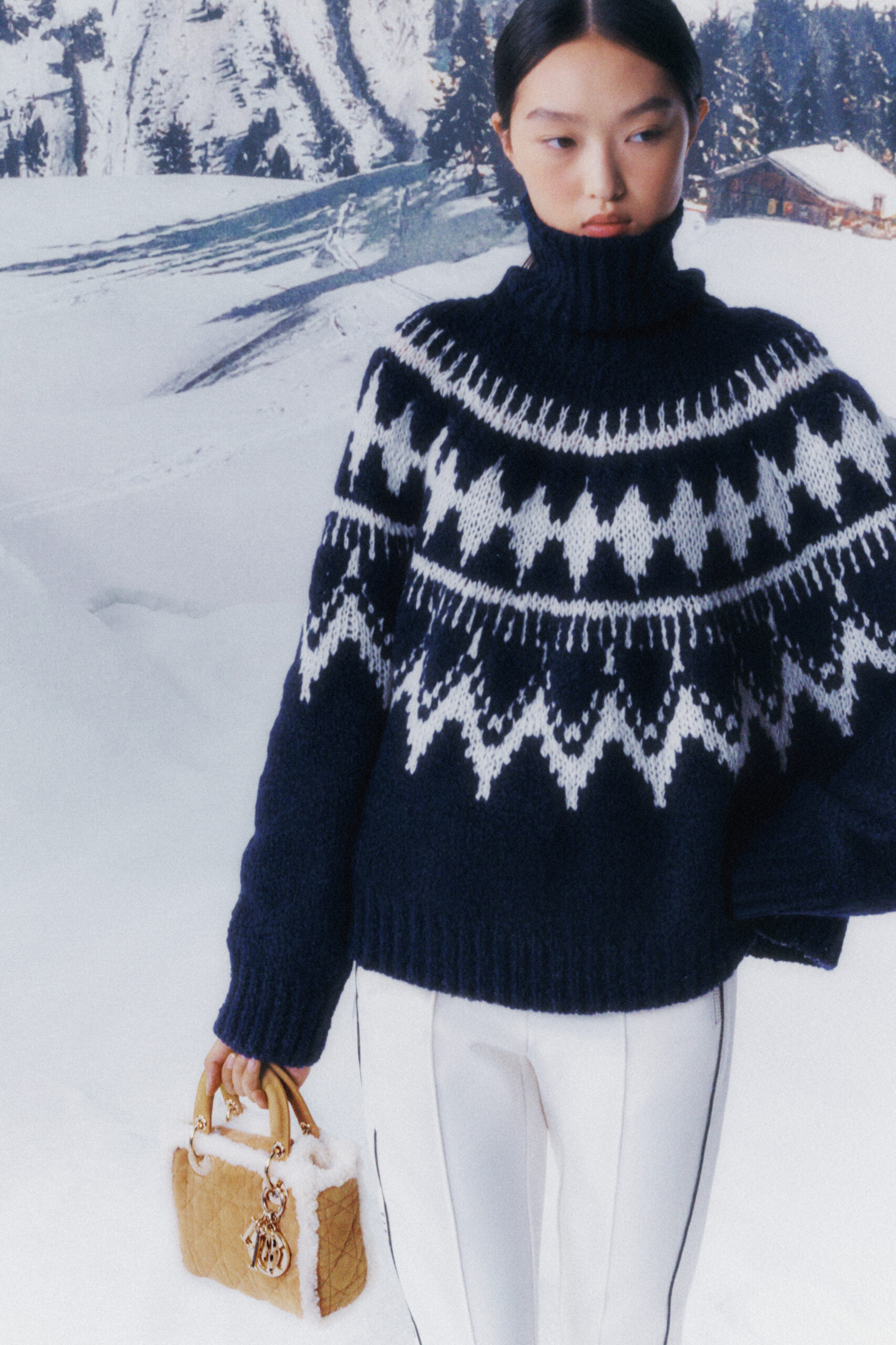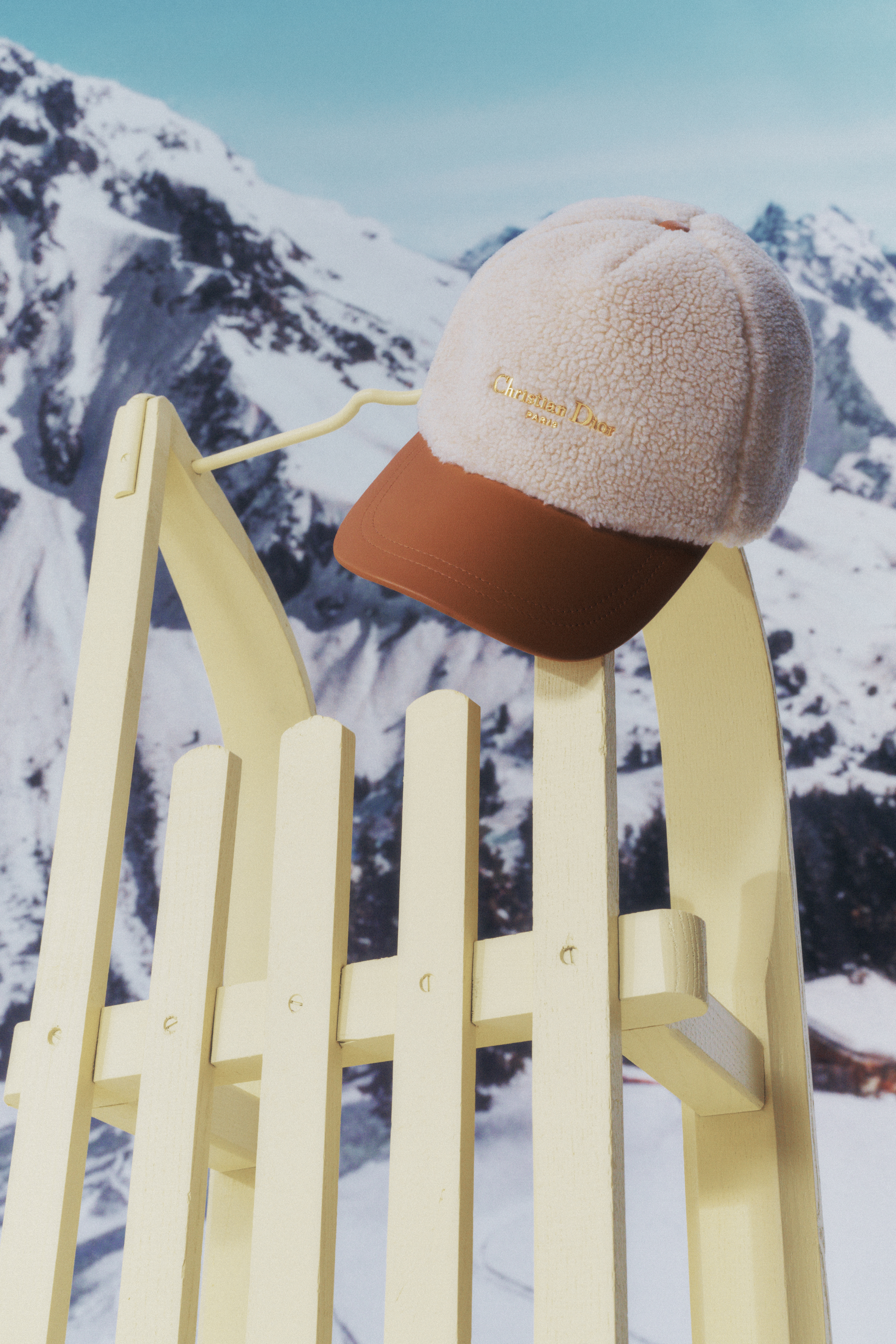 Côté accessoires, lunettes de ski à sangle « Christian Dior », bob Teddy-D, écharpes, bonnets et gants s’ornent aussi de ce motif signature, affirmant une élégance jusque dans les détails.