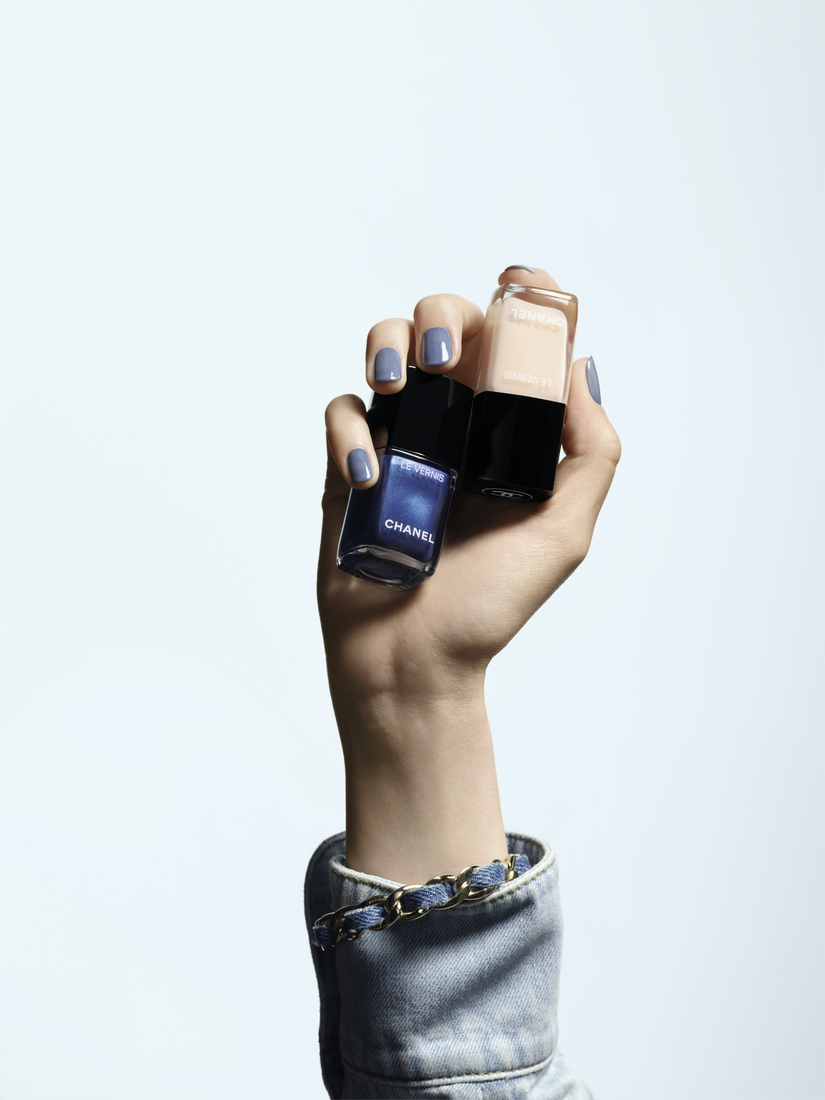 C’est tout l’esprit du denim que LE VERNIS Légende capture dans une texture miroir : un bleu métallique intense aussi profond qu’un jean brut. Ainsi laqués, les ongles deviennent un accessoire, une façon de s’affirmer jusqu’au bout des doigts.