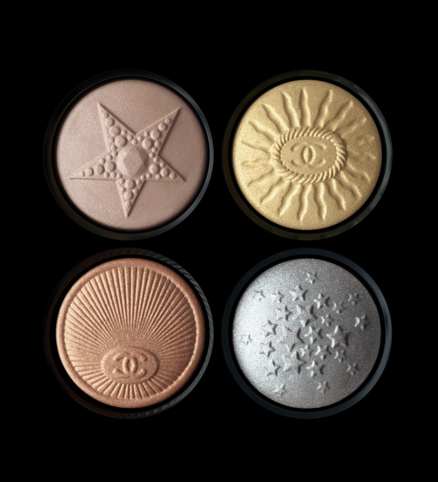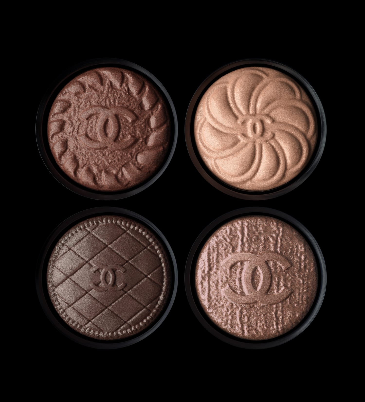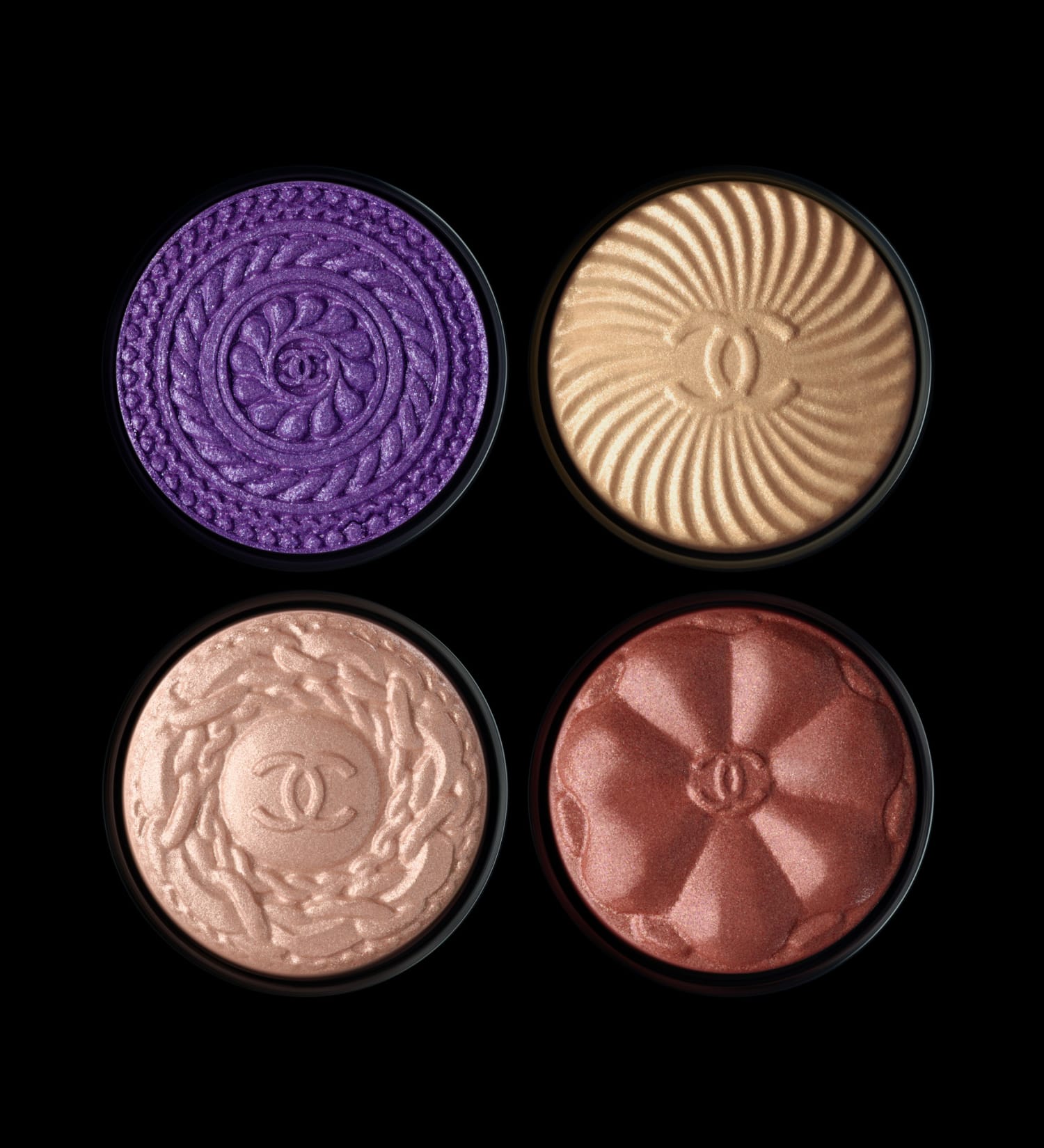 Nouvelle édition, nouvelle obsession. Les fards s’ornent de motifs embossés, clin d’œil appuyé – et assumé – à l’univers de Mademoiselle. Flacon de N°5, camélia, voie lactée… Un vestiaire miniature de symboles CHANEL à porter au regard. Des boutons pigmentés aussi chics que ludiques, à poser, contempler,convoiteretsurtout, collectionner jusqu’à saturation.