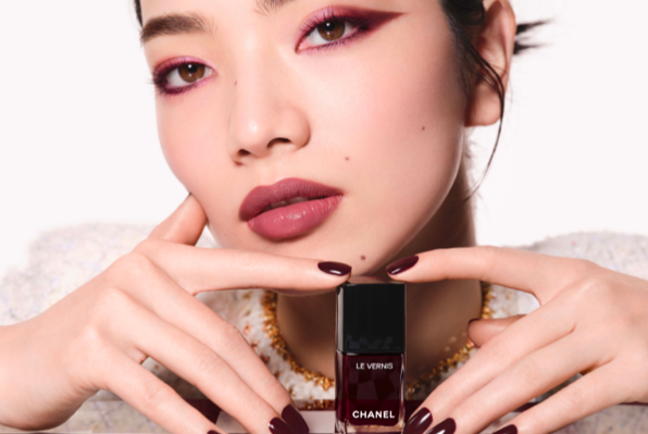 Au commencement, je ne suis qu’un éclat destiné à briller lors d’un unique moment : habiller les ongles des mannequins pour un seul défilé. Dès mon application, je trouble, j’interpelle. Ma couleur, un grenat profond, presque noir, rappelle l’intérieur du sac 2.55, un secret qu’on effleure, un mystère qu’on porte. Et sous cette teinte énigmatique se cache une alchimie inattendue. Des magentas vibrants viennent électriser ma profondeur. Des touches de rose tendre m’adoucissent, comme un contrepoint à ma remarquable présence. Ces révélations ne trahissent pas ma nature : elles la subliment. Elles dévoilent ce qui palpite sous la surface.