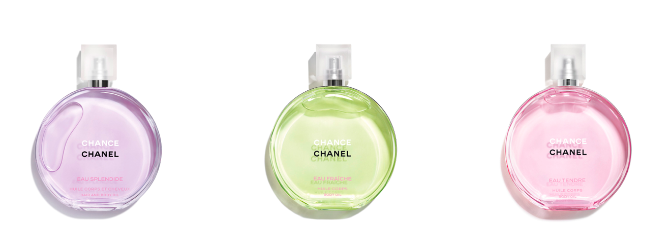 Présentée dans l’iconique flacon en verre signature de CHANCE, l’HUILE CORPS complète le rituel parfumé. Sa texture soyeuse hydrate et sublime la peau et les cheveux. En touche finale, elle prolonge la magie avec un parfum captivant : la chevelure se fait souple et brillante, la peau s’illumine d’un voile satiné.