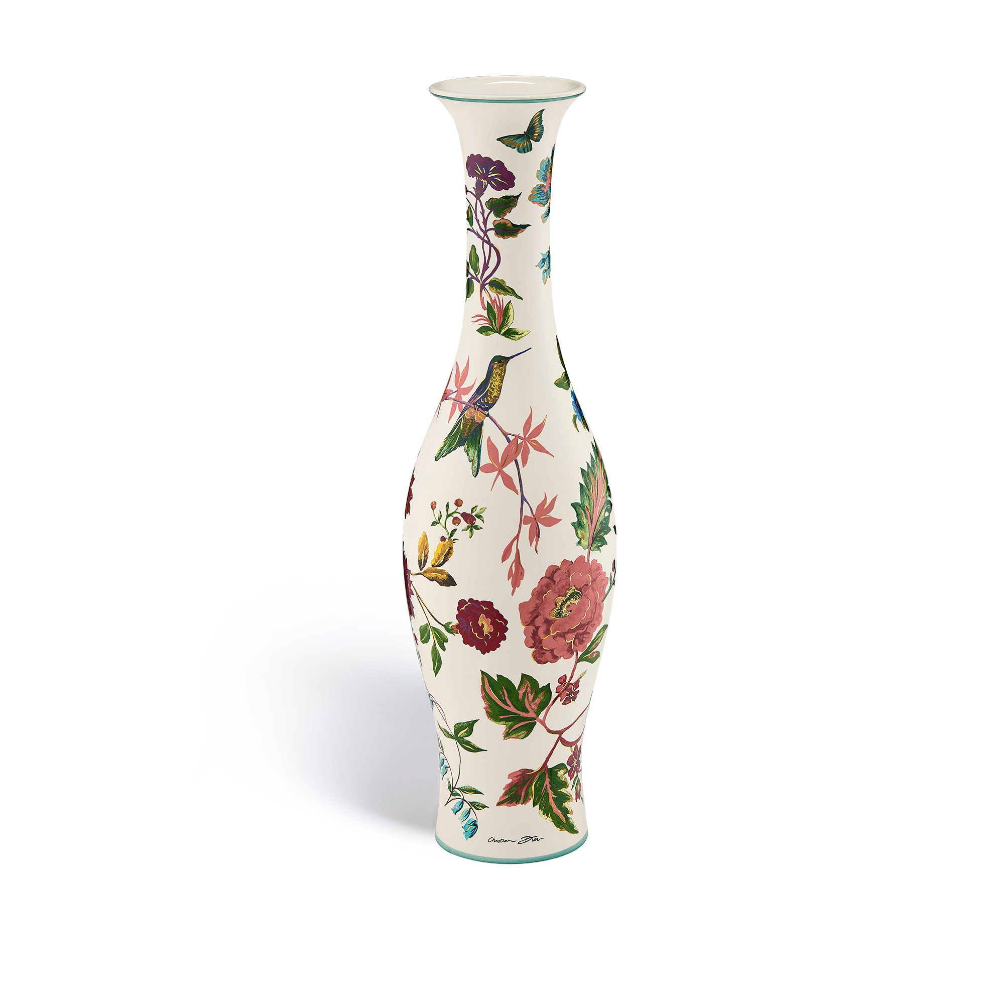 Un motif poétique qui s’épanouit sur une série de pièces d’exception : coussins et couvertures en cachemire se déclinent sur fond noir profond ou blanc éclatant, tandis que de la verrerie peinte à la main – assiettes et verres – ajoute un supplément d’élégance à chaque table. Paravent, cadres sculptés, bougeoirs ouvragés ou encore boîte à bijoux viennent sublimer chaque intérieur d’un style infiniment Dior. Ultime surprise, une amphore aux proportions inédites témoigne de la virtuosité et des savoir-faire des Ateliers. Une ode à l’inventivité, au patrimoine et à la poésie du quotidien.