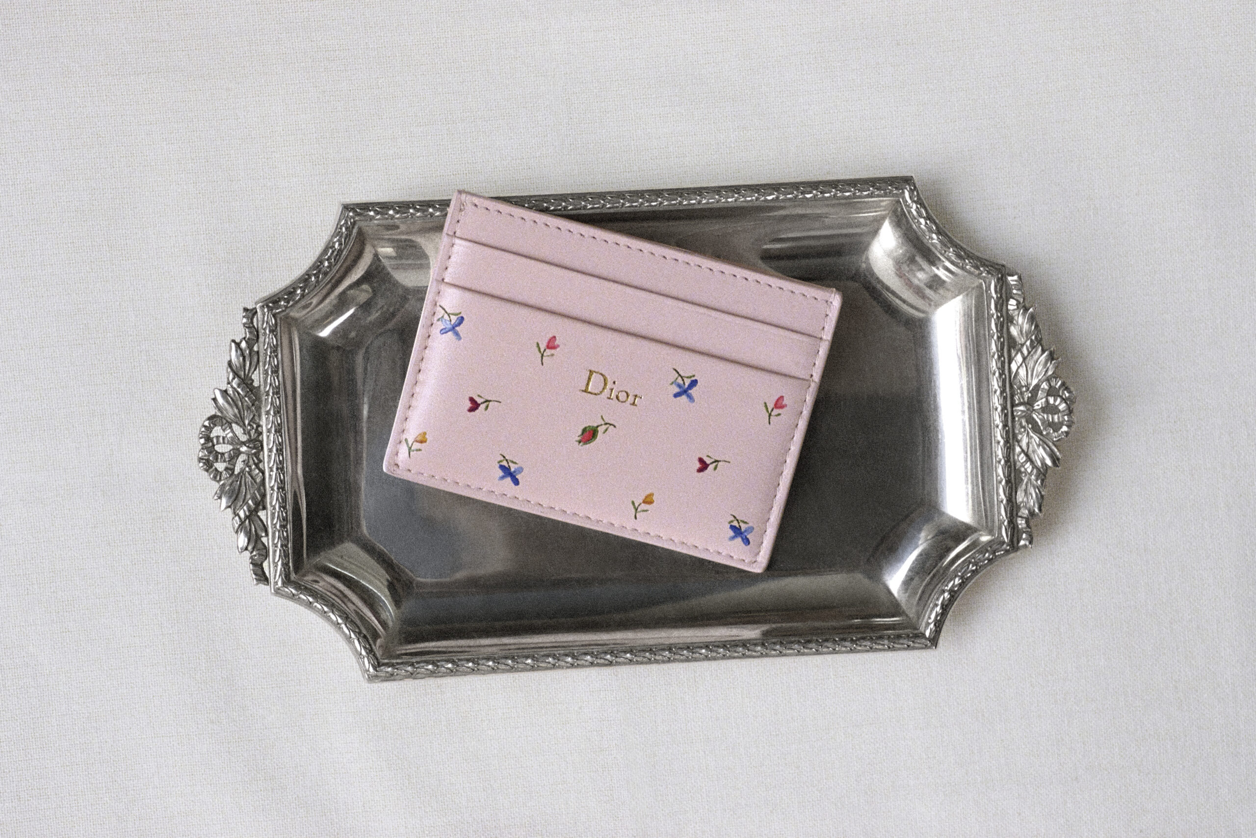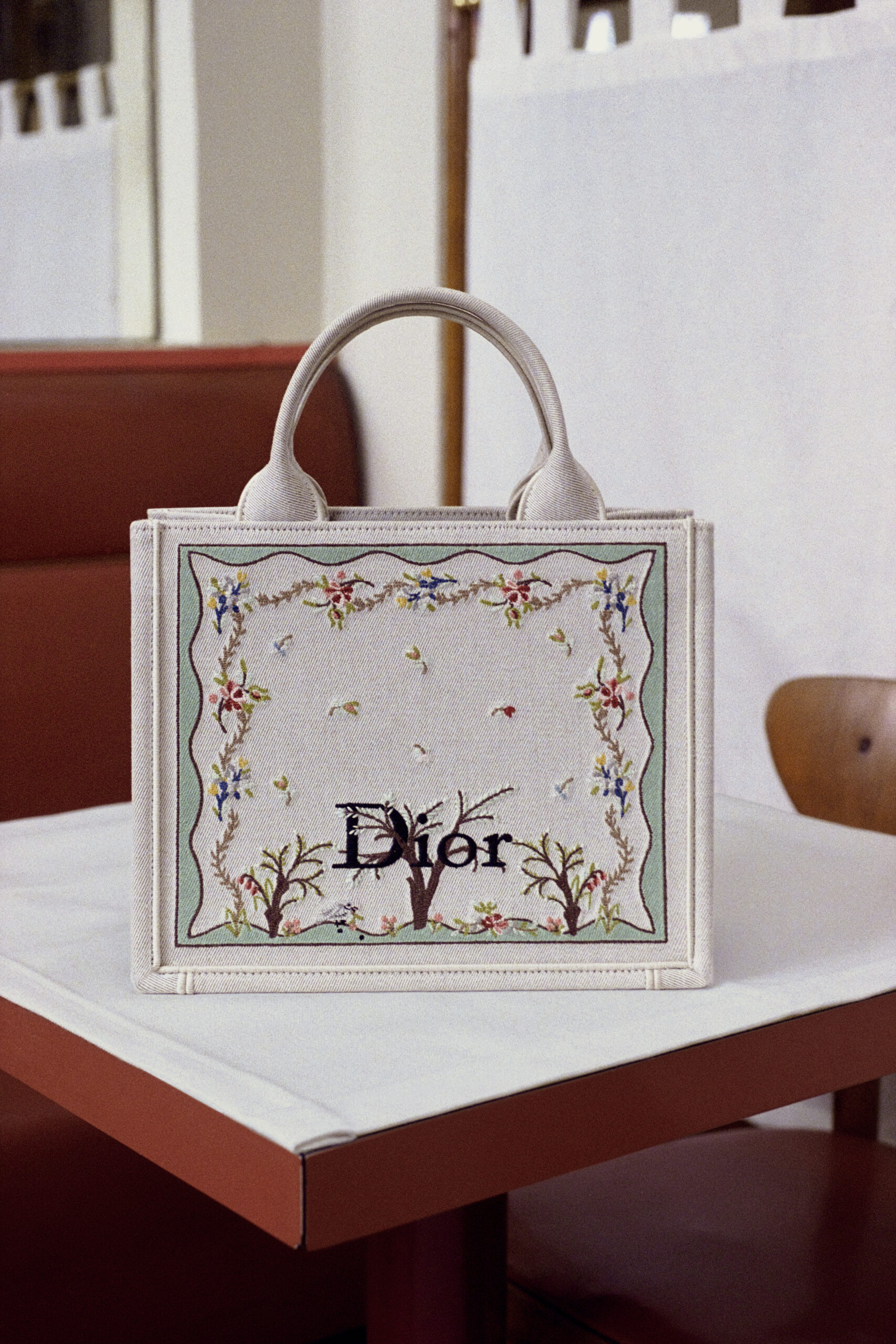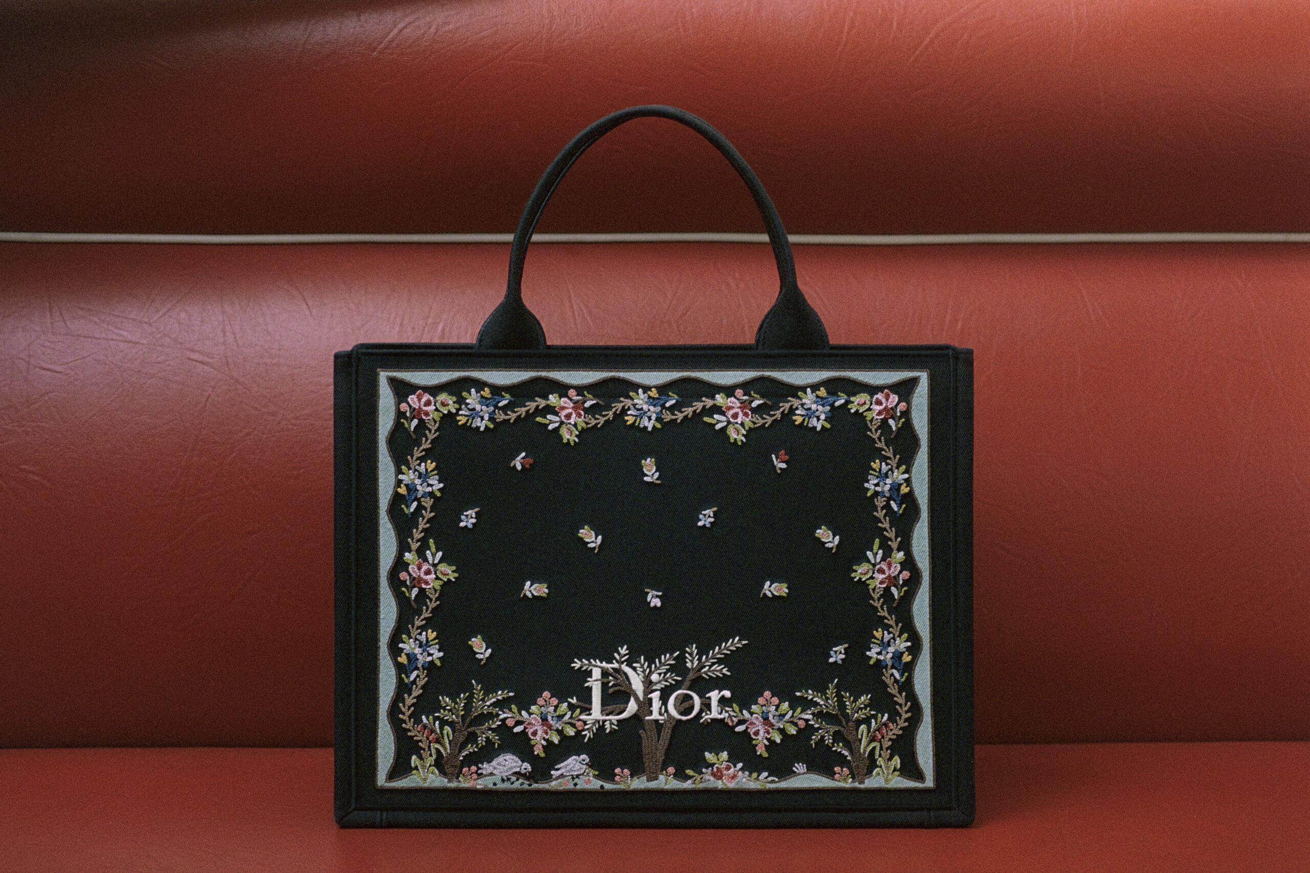 Les bijoux – dont les Tribales – et les sneakers Saltwind s’ornent aussi de ces détails bucoliques. Tel un jardin poétique, le tableau Floral Heart habille des pièces en soie, tandis que l’iconique Médaillon adopte une teinte rose sur le Dior Book Tote et transpose son nœud sur le Saddle.