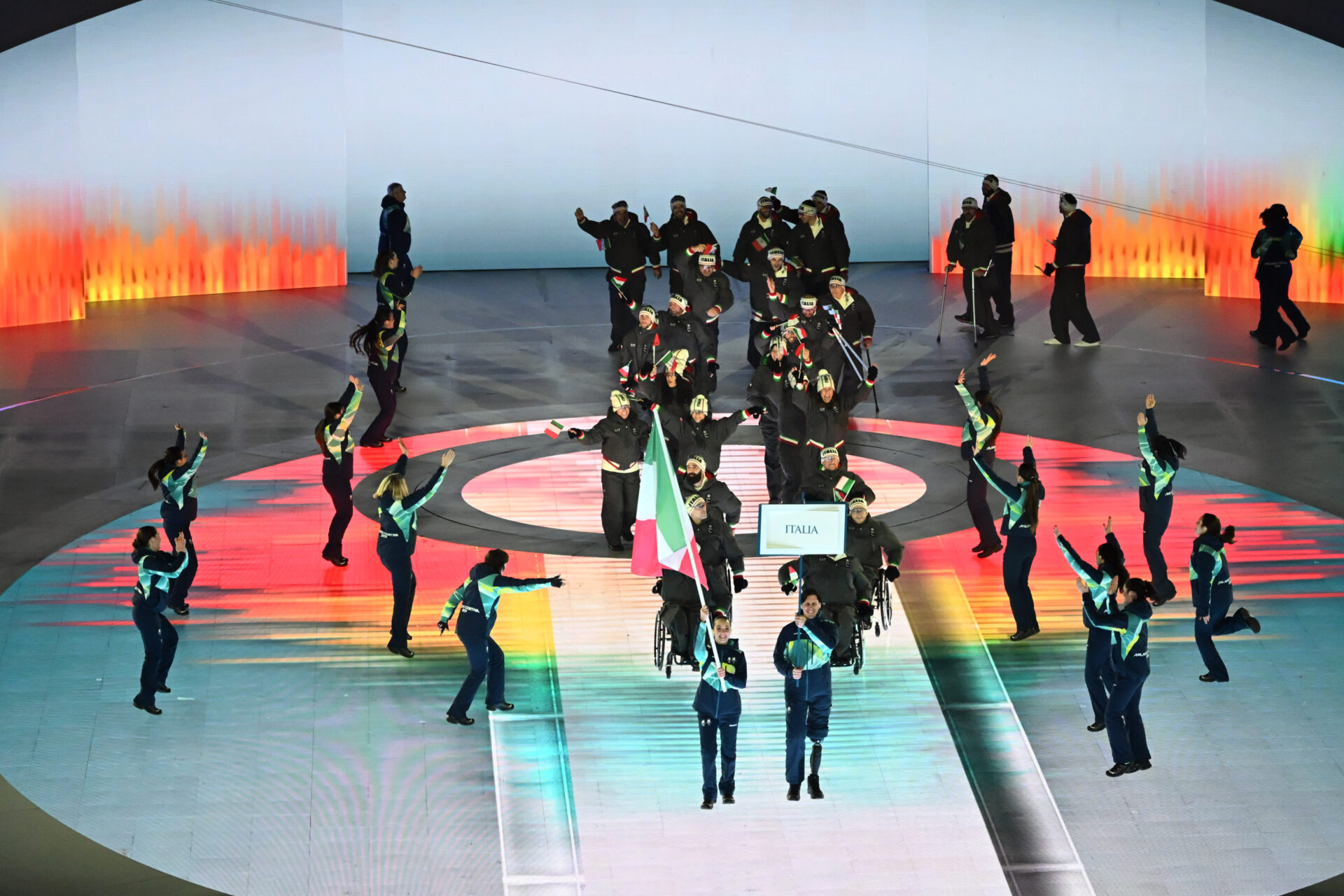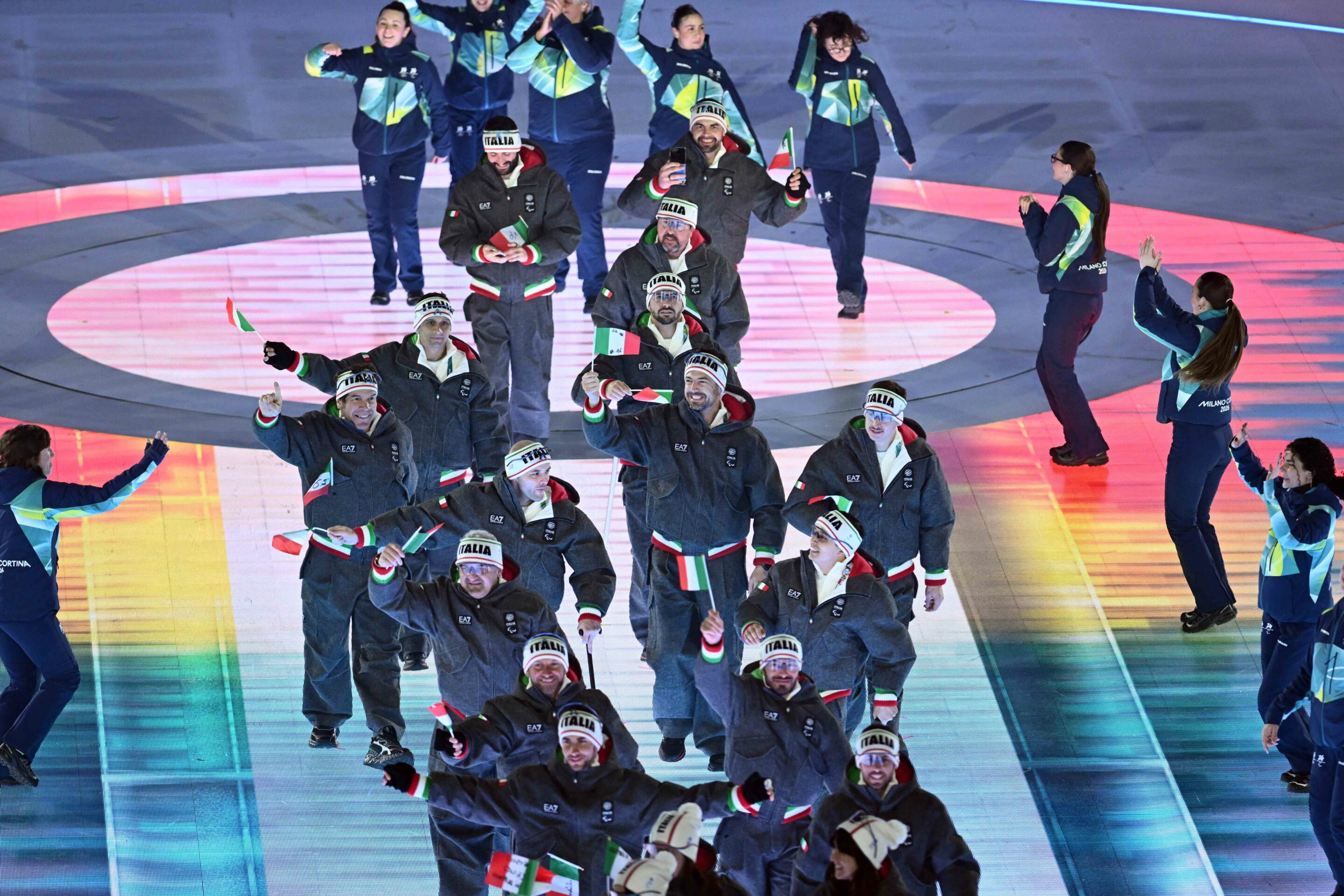EA7 Emporio Armani, partenaire et fournisseur de lunettes de Milano Cortina 2026, a conçu les tenues portées par les athlètes lors de la cérémonie d’ouverture de la XIVe édition des Jeux Paralympiques d’hiver, qui s’est tenue le 6 mars aux Arènes Olympiques de Vérone.