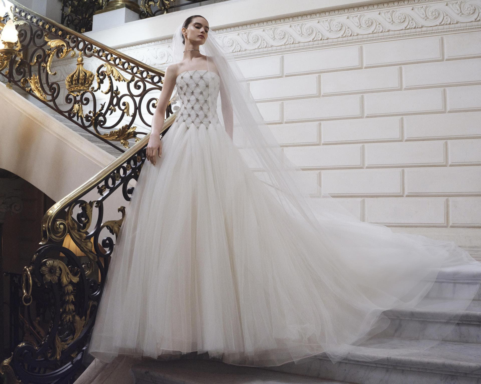 Inspirée par l’art français des tableaux vivants, cette collection présente la mariée comme une œuvre d’art en devenir.