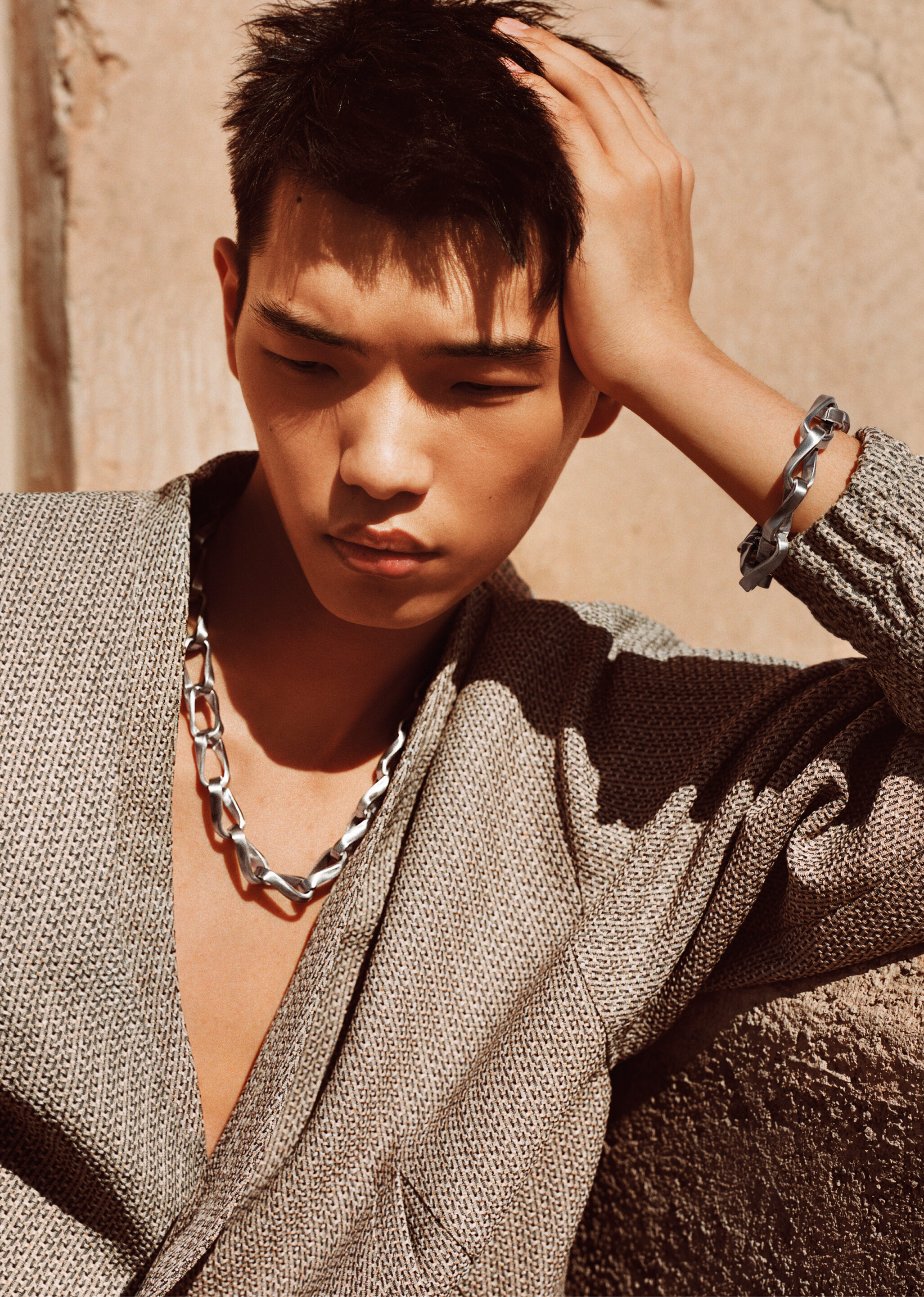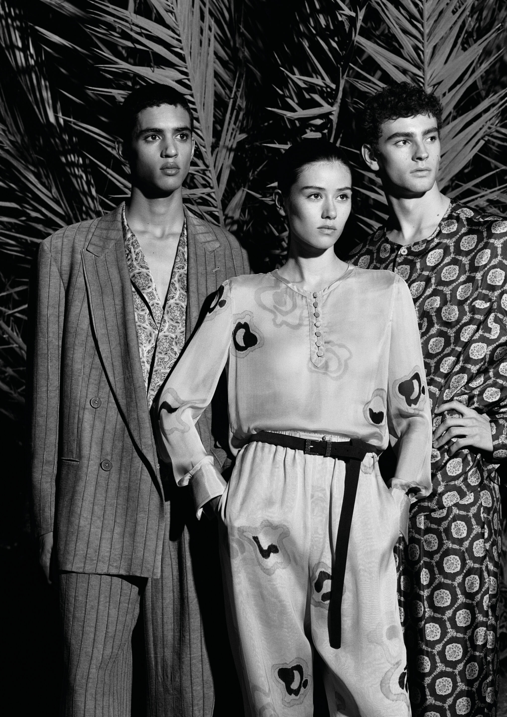 La légèreté des tissus et leur qualité tactile, associées à des silhouettes qui mêlent sensibilité métropolitaine et influences lointaines, se révèlent dans la manière naturelle dont les mannequins occupent les espaces et les situations.