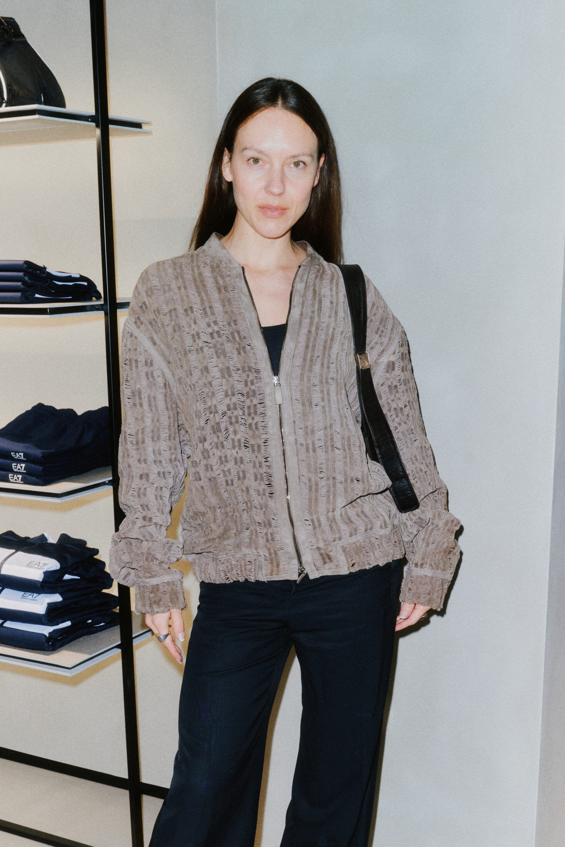 Leo Dell’Orco, directeur artistique homme pour l’ensemble des lignes Armani, était présent pour accueillir les invités, parmi lesquels figuraient l’acteur et musicien Daniel Donskoy, l’actrice Jeanne Goursaud, l’acteur Enzo Brumm, l’artiste Lilo Klinkenberg, la costumière Aino Laberenz, la chorégraphe Franka Marlene Foth, la musicienne Anahita Sadighi et le mannequin Luca Gadjus.