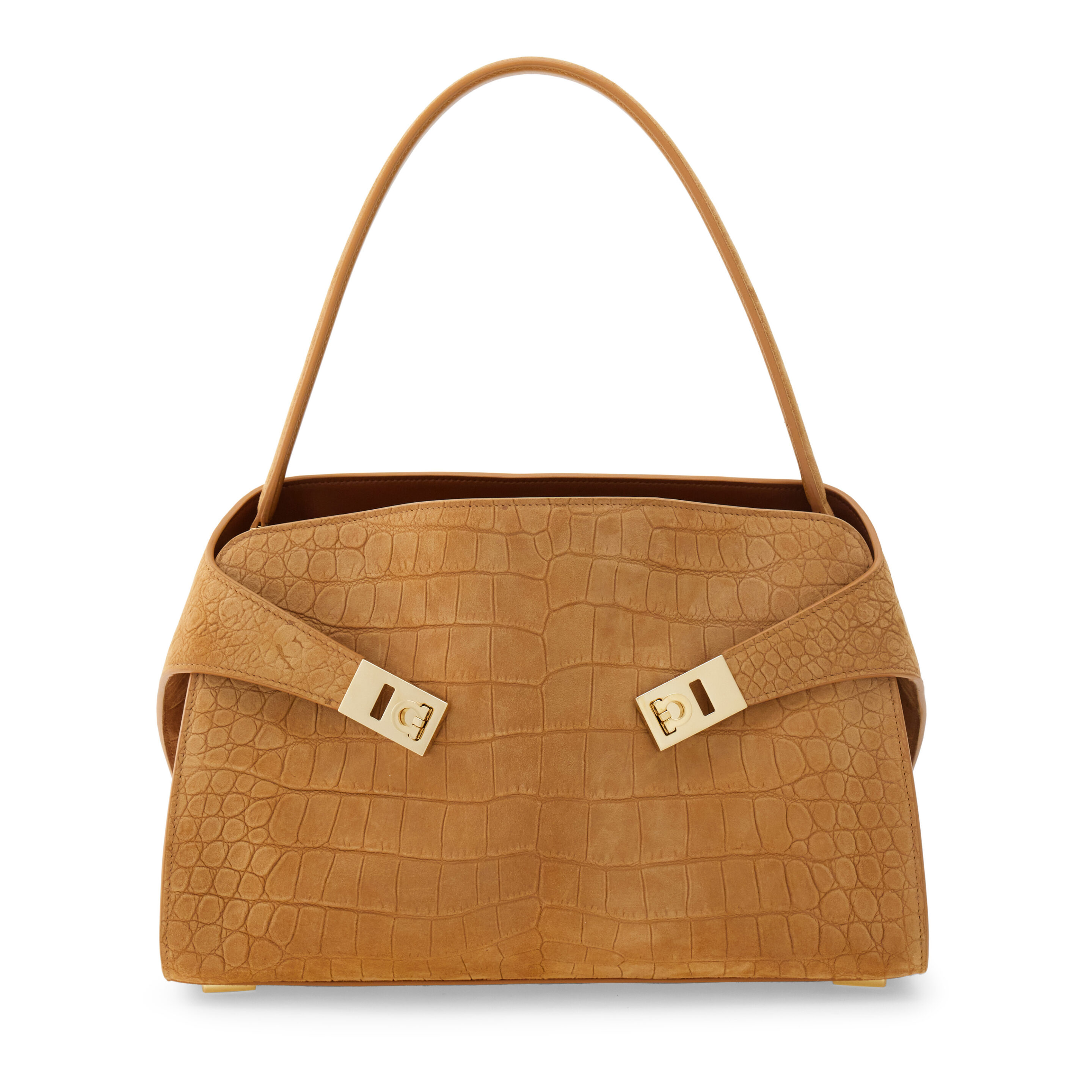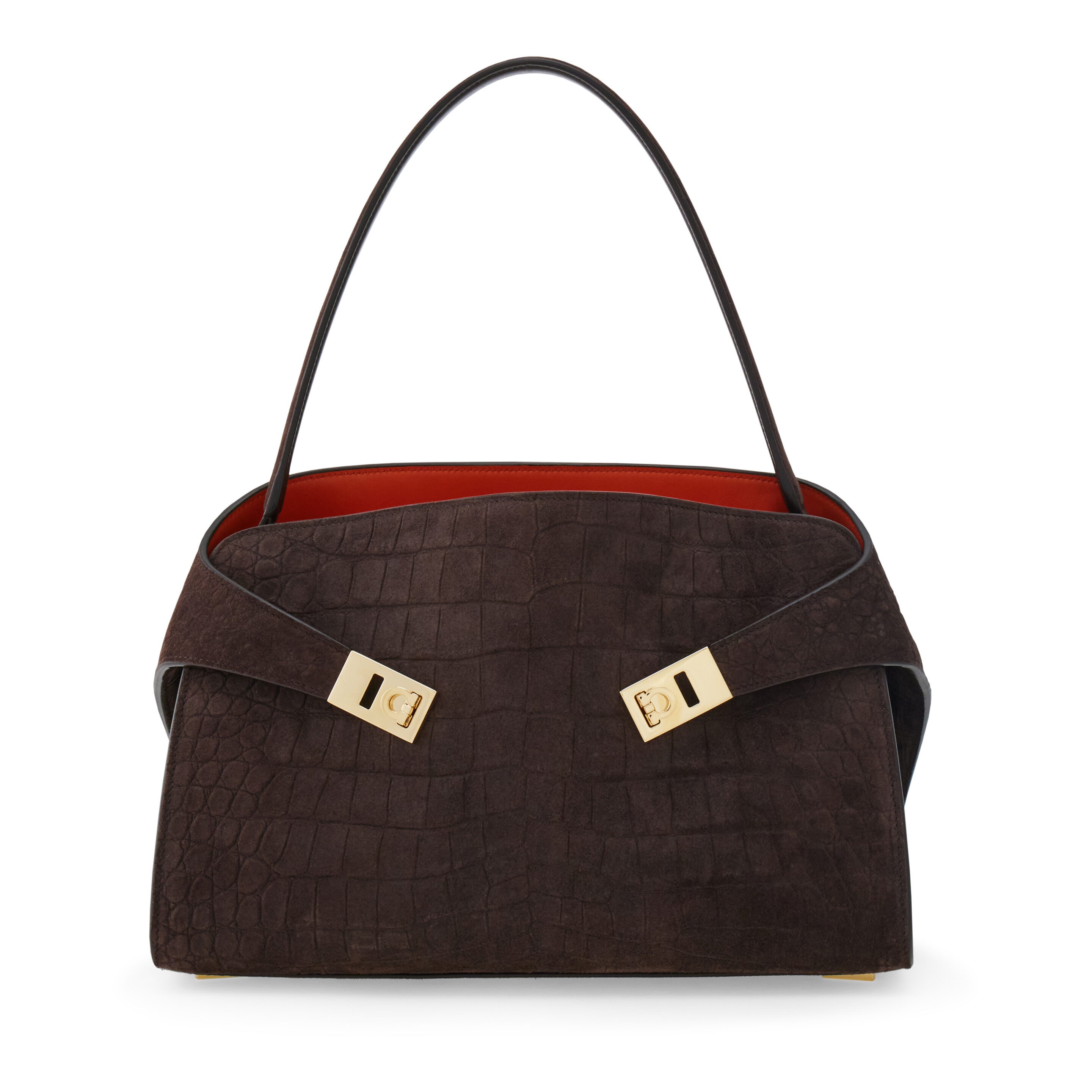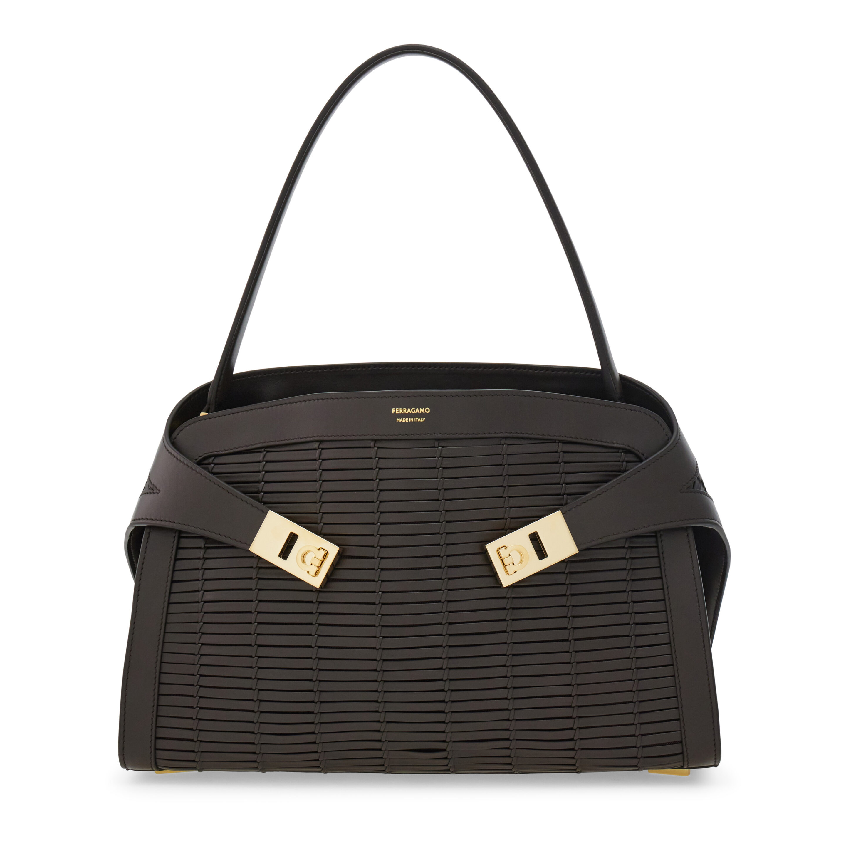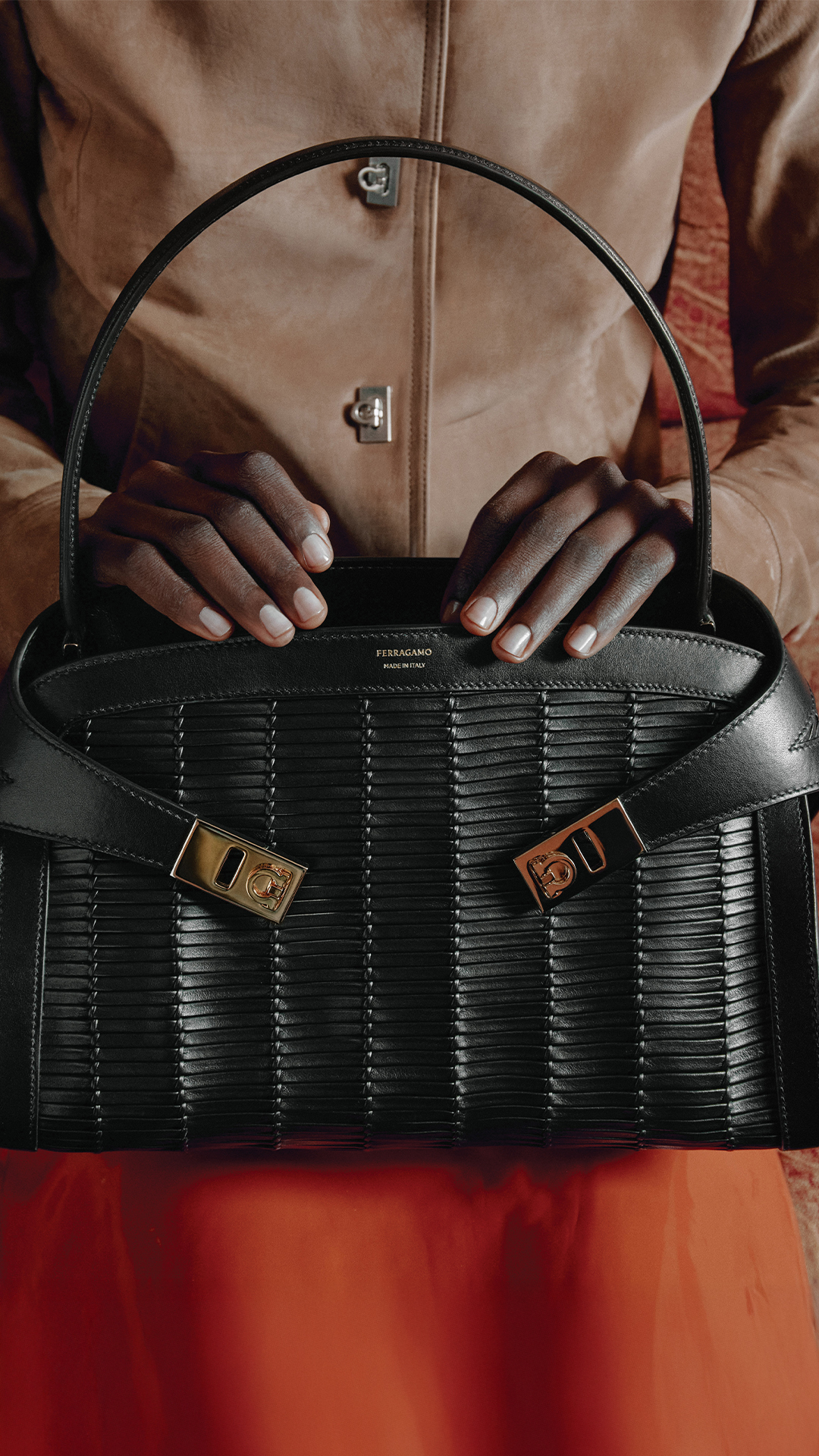 Le sac Hug souple de Ferragamo arbore une silhouette intemporelle qui allie savoir-faire artisanal et modernité.