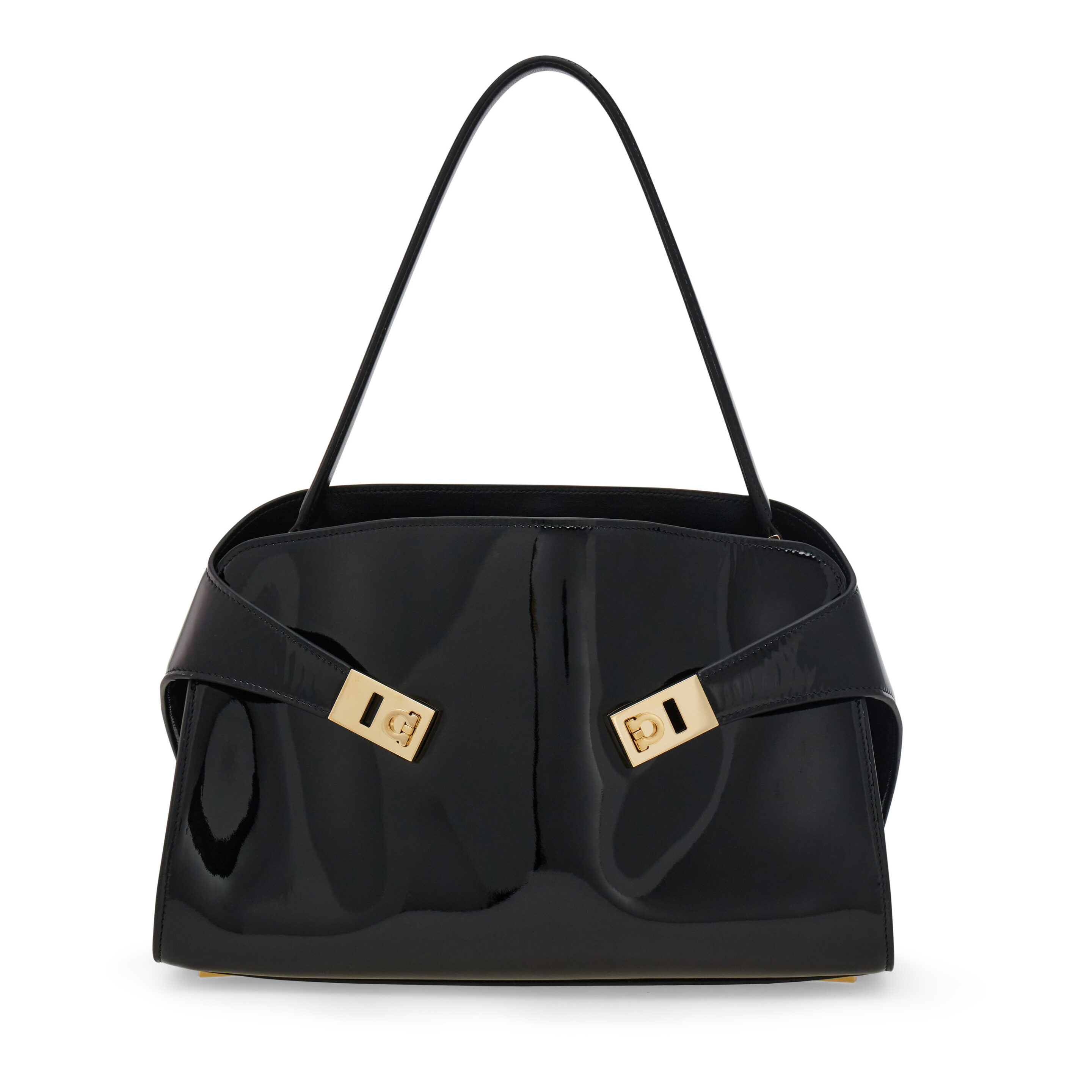 Accessoire essentiel, il conjugue élégance et fonctionnalité, idéal en toute occasion. Sa particularité réside dans sa construction : deux brides latérales enserrent le devant du sac et se ferment par deux fermoirs Gancini symétriques.