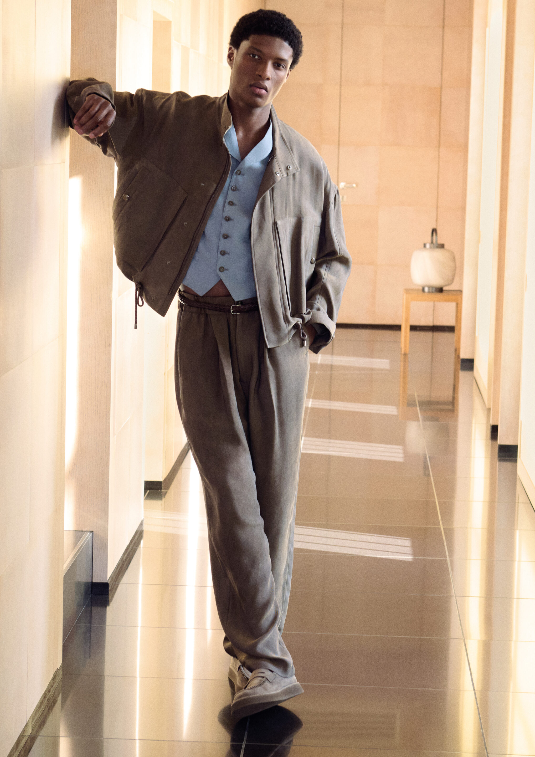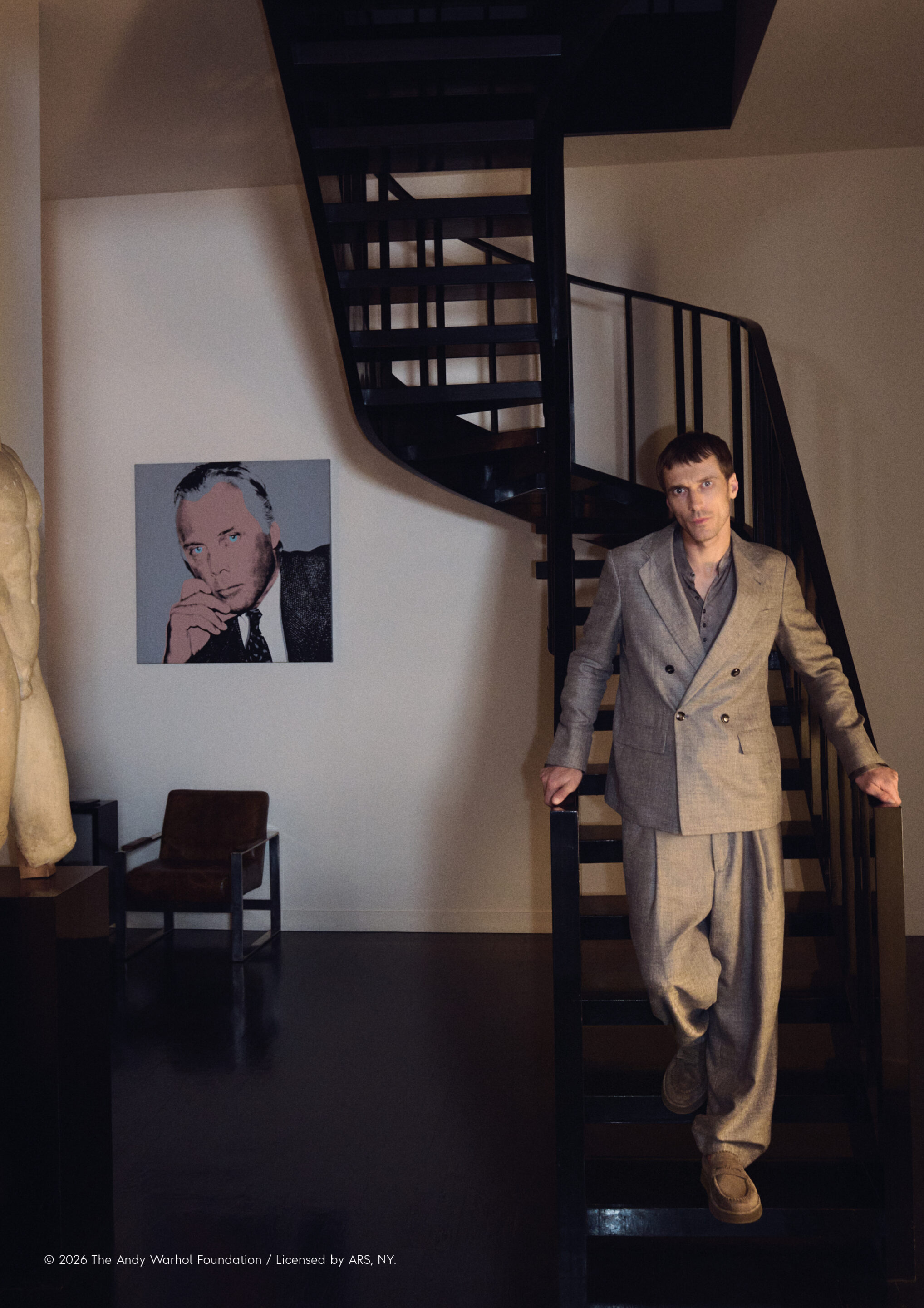 Située dans le bâtiment qui accueille les défilés de la marque, la maison, avec ses différentes pièces, devient aussi le décor évocateur de la vidéo de campagne : un récit visuel, un hommage subtil aux espaces où la mémoire de Giorgio Armani est encore vivante, mais imprégnée d’un esprit présent et vital.