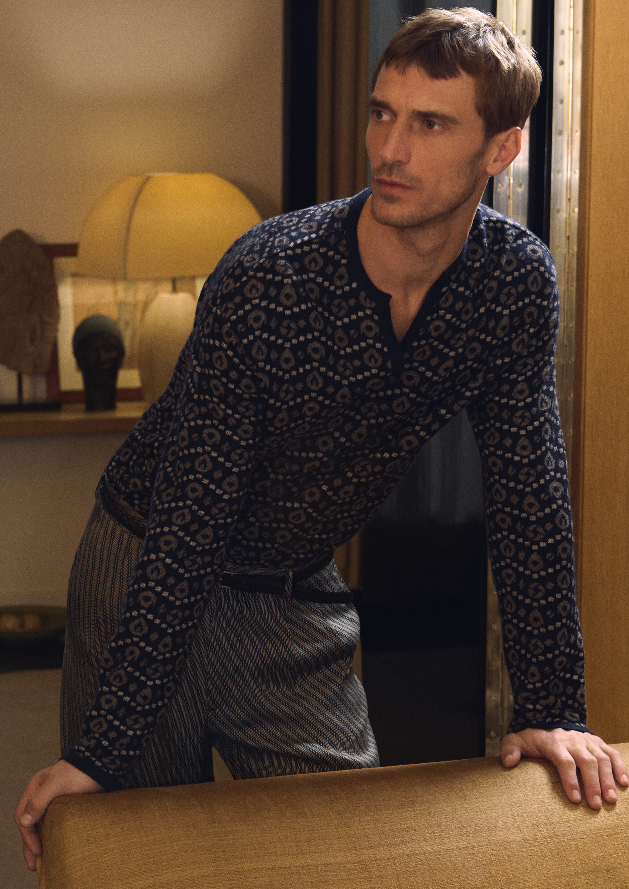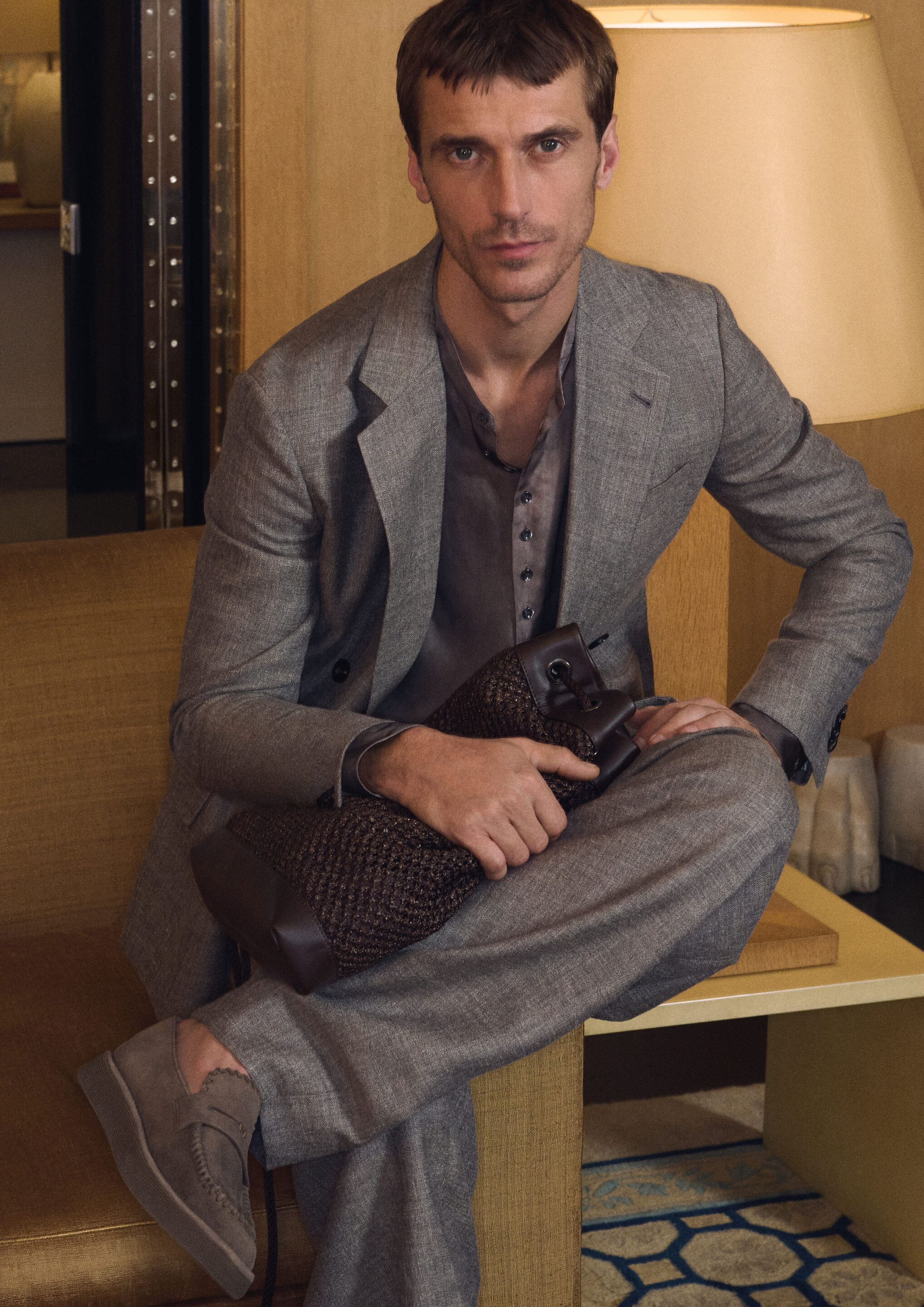 Les mannequins portent des costumes structurés, des robes douces et fluides, des pulls et des chemises qui suivent le corps avec aisance, tandis que tout paraît naturel et sans effort : l’expression d’une façon d’être et de s’habiller qui défie le temps.