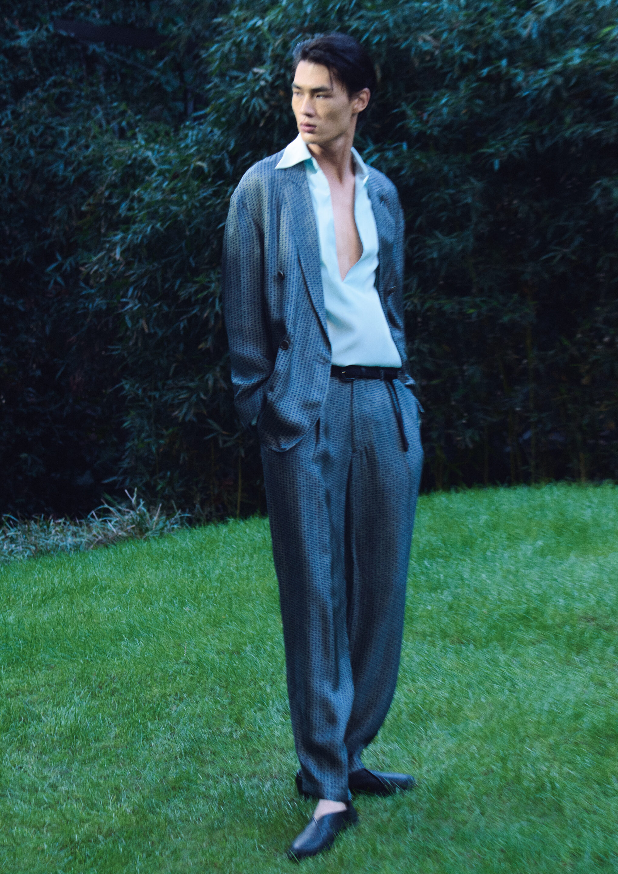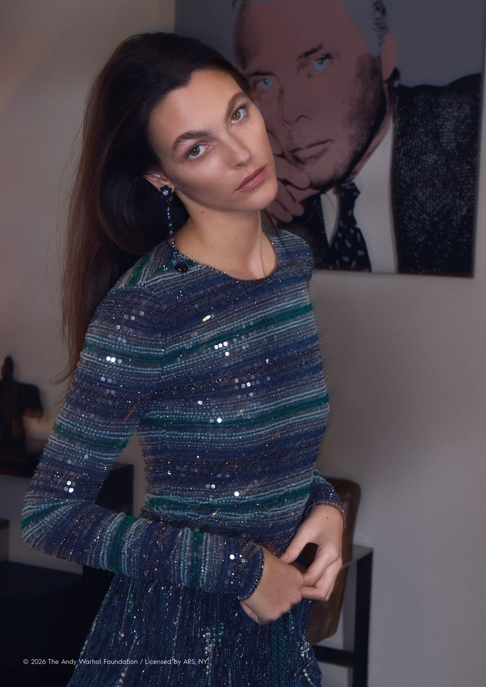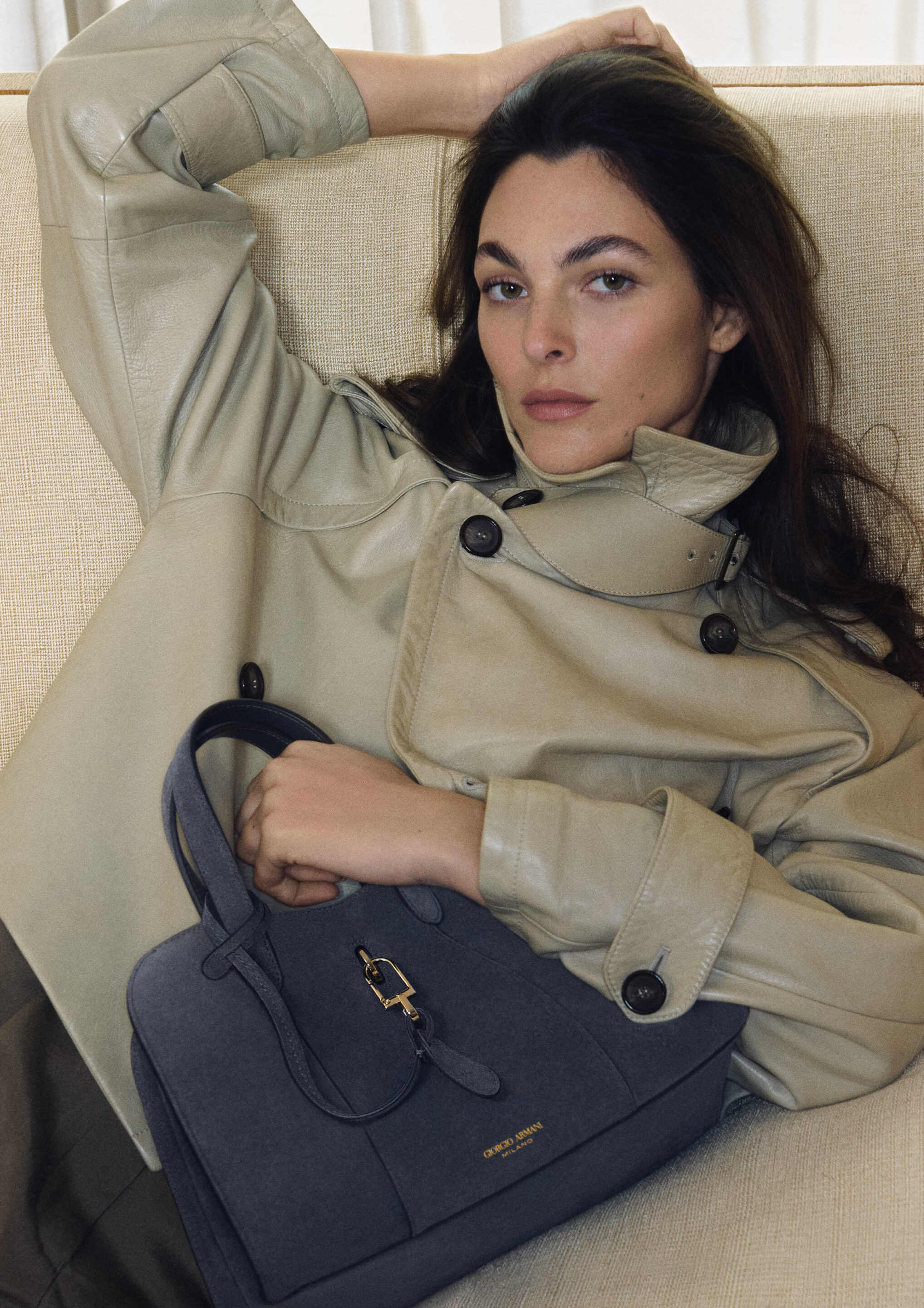 Vittoria Ceretti – de retour pour poser pour Armani – ainsi que Clément Chabernaud évoluent dans différents décors – à la fois en intérieur et dans le jardin, entourées d’objets personnels, de pièces de design, de sculptures et d’œuvres d’art – aux côtés d’Aboubakar Conte, Zhaoyi Fan et, pour les photos de Giorgio Armani Eyewear, de Greta Hofer.