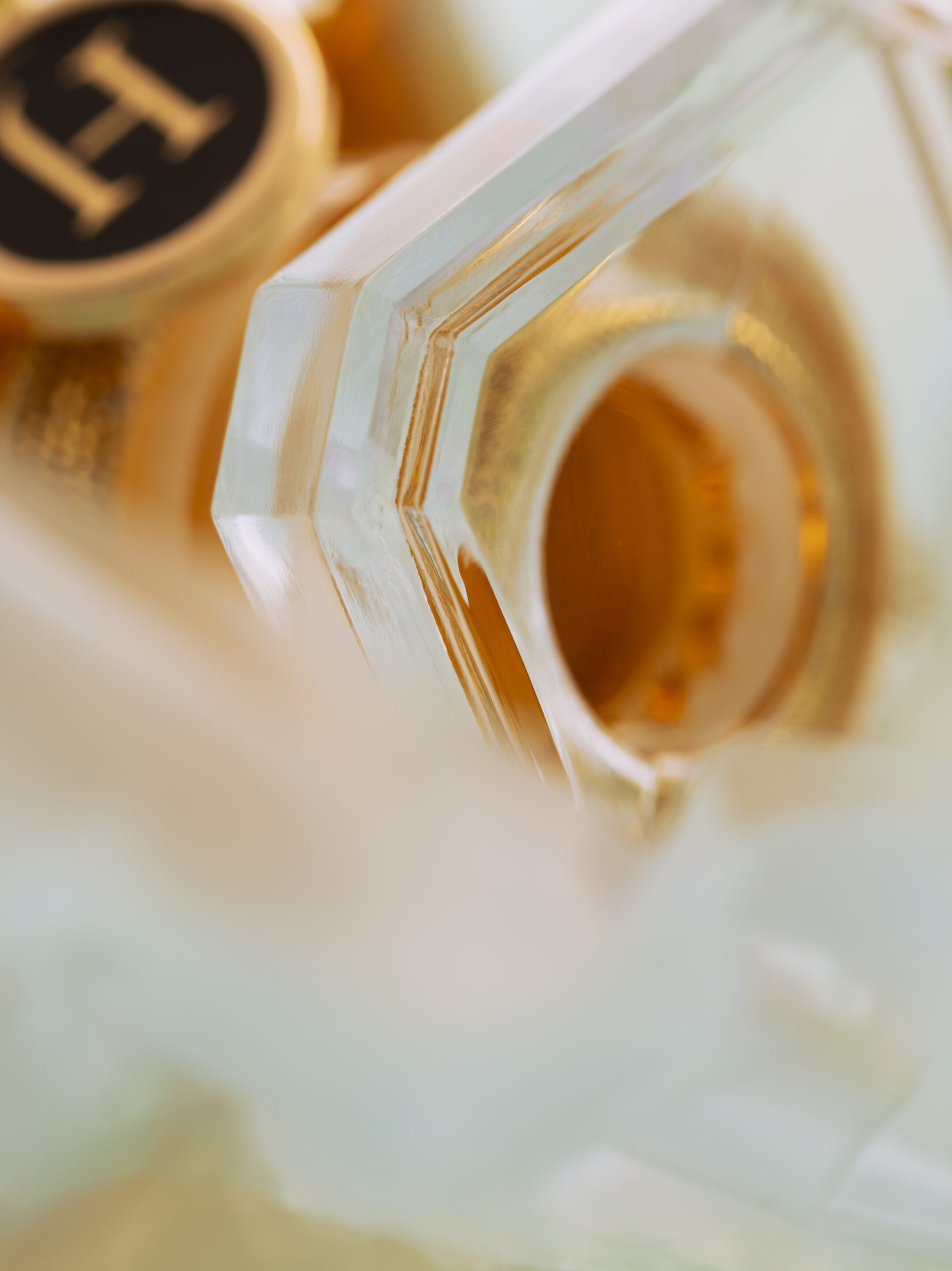 Elle raconte l’histoire d’une union inattendue: celle de l’absolu Rose de Mai de HJ avec le safran. Une célébration délicate, florale, presque fruitée, et épicée. Le safran, souvent associé à l’oudh et aux notes cuirées, sublime ici les roses Damascene et les Rose de Mai de HJ, avec un souffle de patchouli relevé de poivre. L’iris apporte une touche de sophistication avant que la fragrance ne s’épanouisse en une caresse subtile et soyeuse de bois de santal et d’ambre.