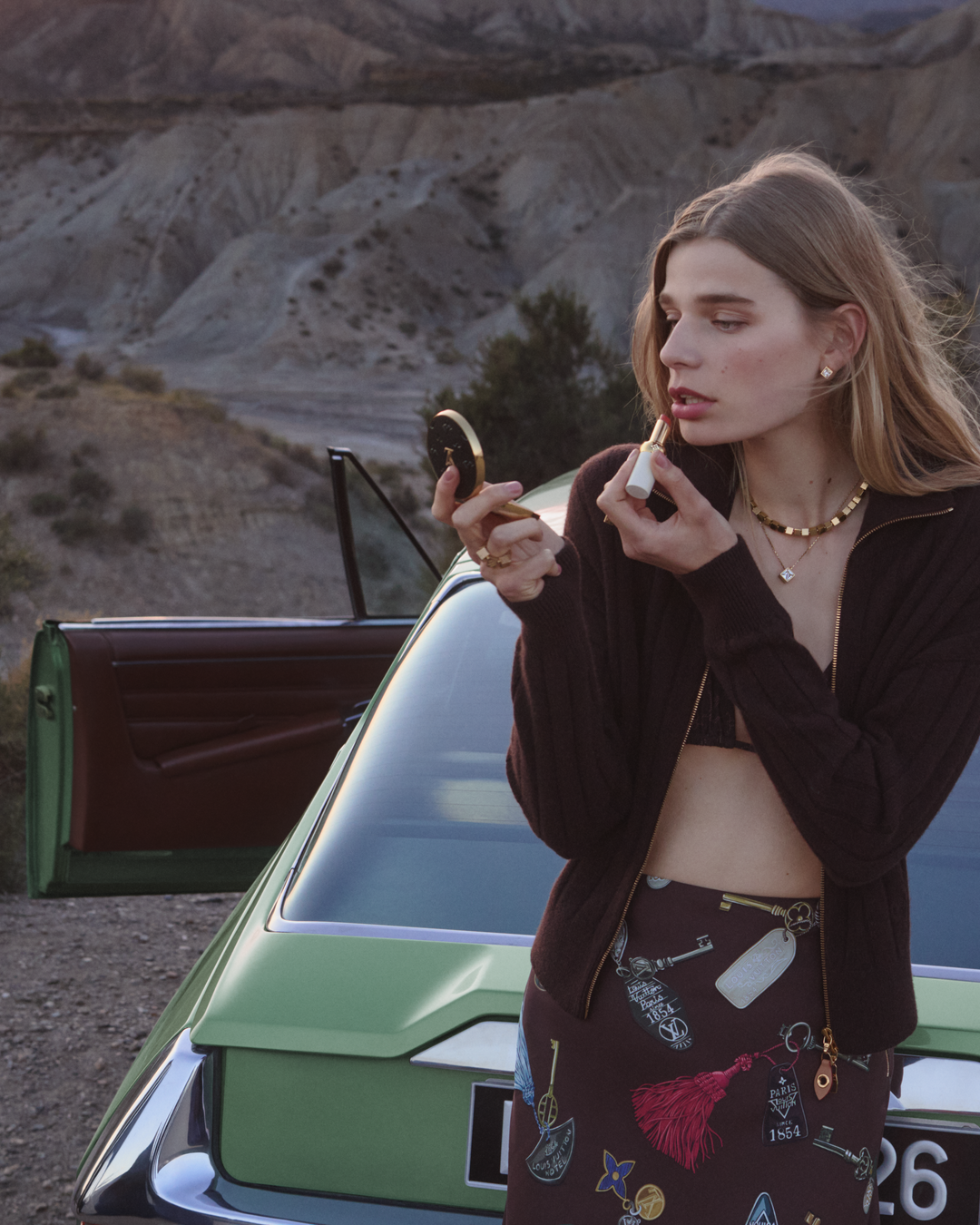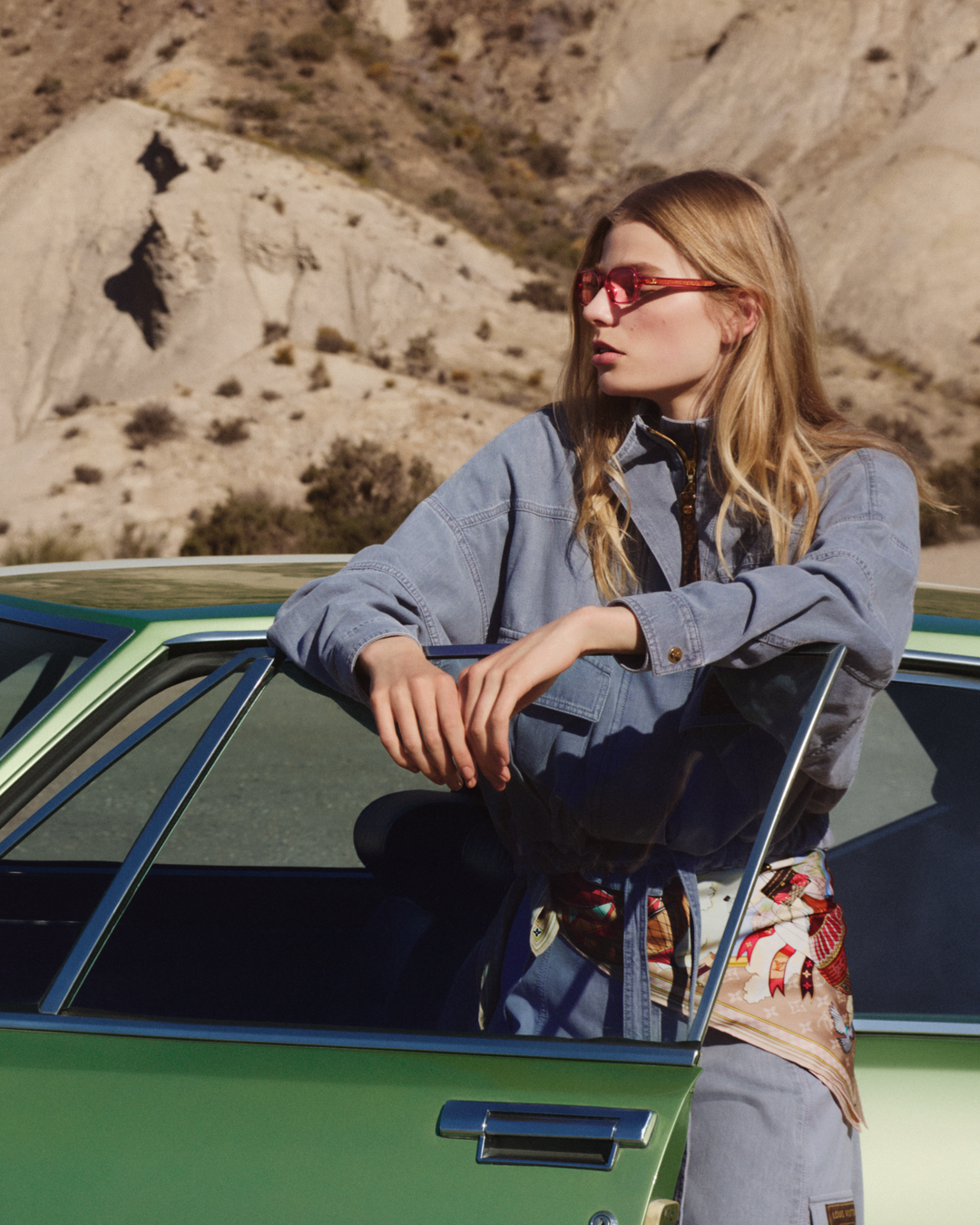 Indémodable, le denim joue les contrastes. Dans une nuance bleu-gris délavé et dans la nouvelle variation du Monogram Louis Vuitton Denim Marron, pantalons et blousons amples, robes ceinturées sans manches à larges poches cargo dessinent une silhouette décontractée.