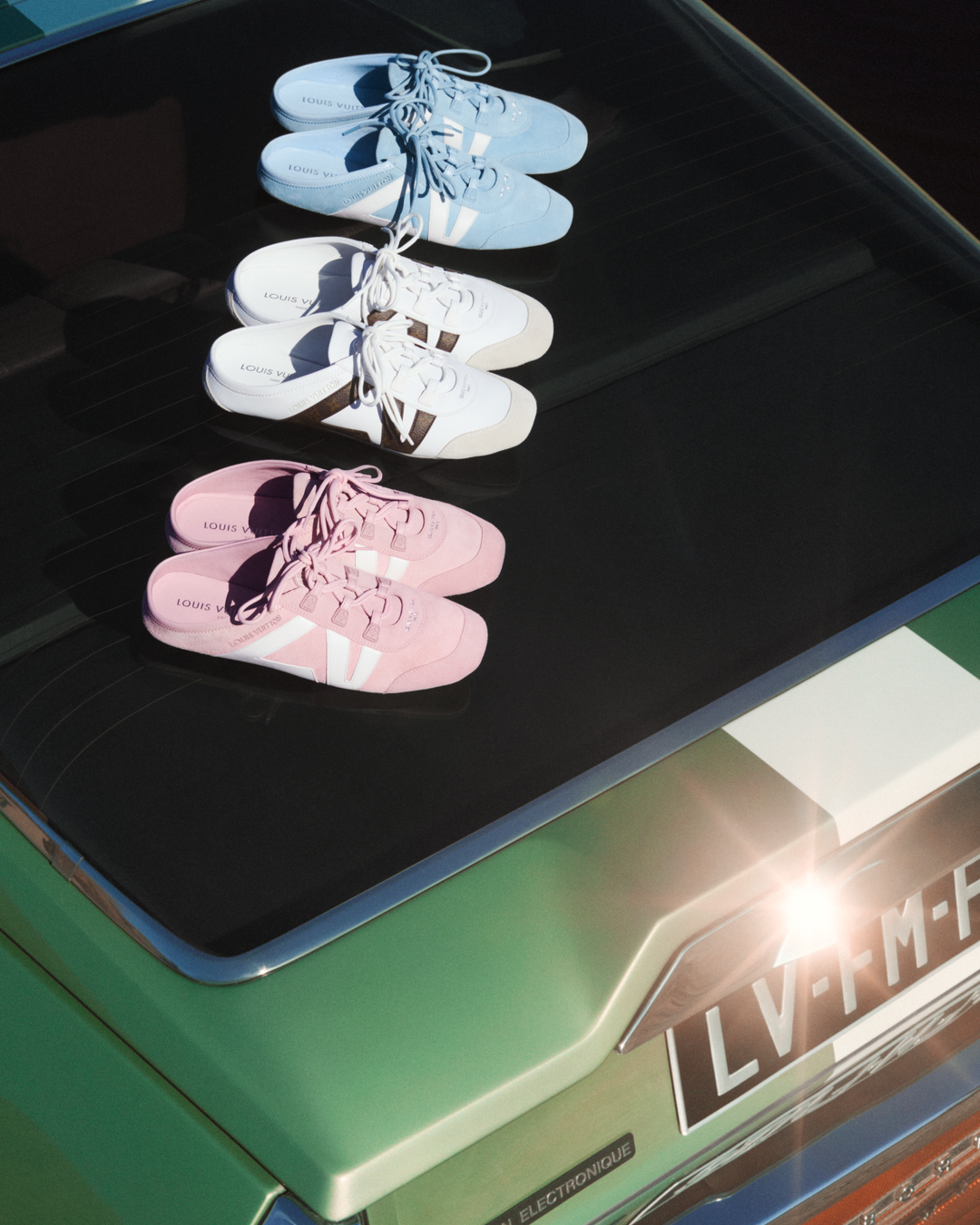 Autre accessoire phare de la collection Flight Mode, la LV Sneakerina. Ce modèle résolument dynamique au profile épuré fête ses un an. Conjuguant liberté de mouvement et agilité, il est décliné aujourd’hui en mules et en boots. Chaque paire initie l’allure sportswear et urbaine d’aujourd’hui et part à la conquête d’une élégance fonctionnelle. En cuir, en suède ou en tissu jersey, les variations bicolore ou monochrome sont conçues pour être portées au quotidien et sublimer toutes les silhouettes de la collection Flight Mode.