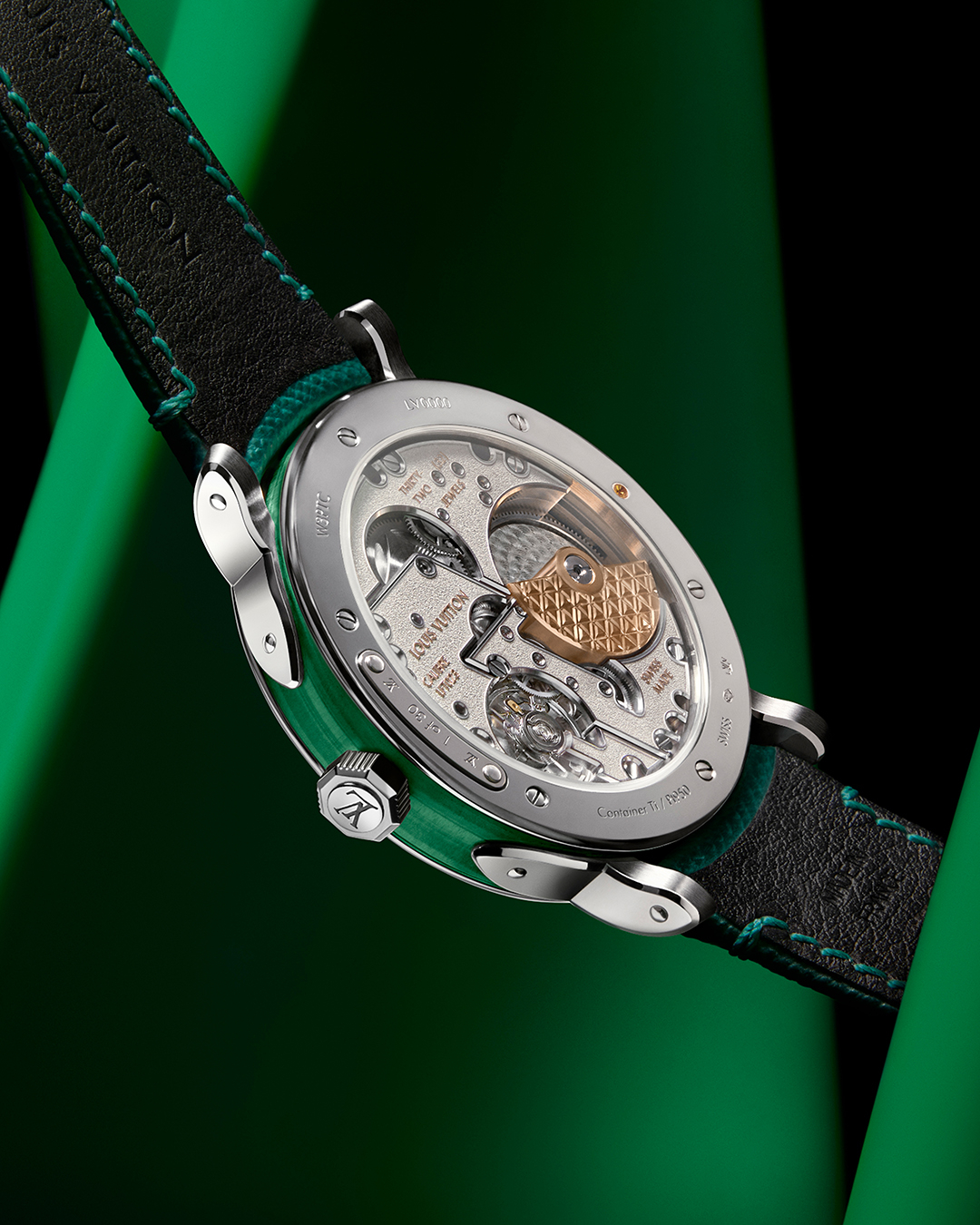 Matthieu Hegi, Directeur Artistique de La Fabrique du Temps Louis Vuitton, s’est inspiré des « dress watches » de la seconde moitié du XXe siècle, une époque marquée par l’utilisation pleine d’audace de cadrans en pierre ornementale. Il explique en ces termes l’attrait inné pour les matériaux utilisés dans les modèles Escale Turquoise et Malachite :« L’harmonie intrinsèque de cette gamme réside dans le choix des pierres. Chacune est unique, du fait de ses veines, ses reflets, sa structure interne, qui en font toute leur beauté. Ce qui rend chaque pièce si précieuse, c’est qu’elle représente une œuvre unique, créée par la nature. Nous avons le privilège de travailler pour une Maison d’une immense audace, toujours en quête de beauté. Cependant la beauté est avant tout une offrande de la nature. Notre rôle est simplement de la mettre en valeur. »
