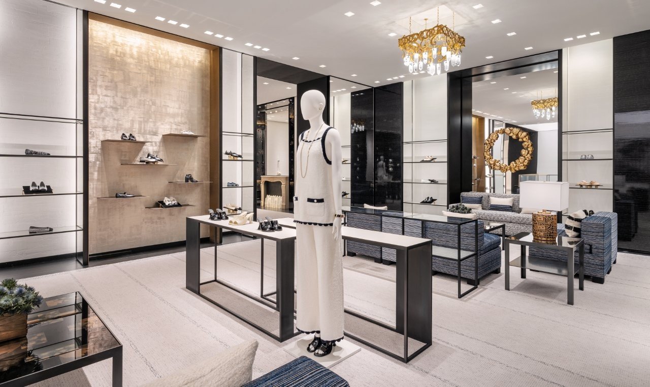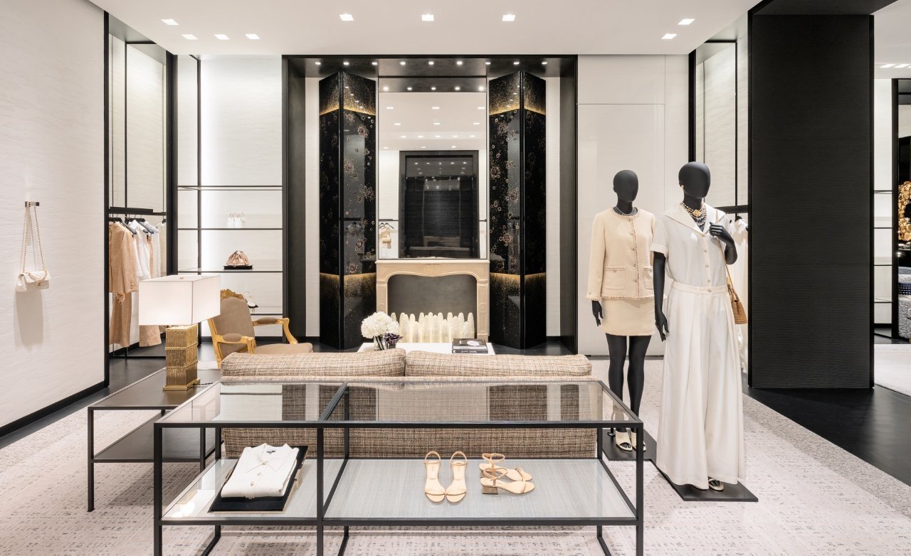 Conçue par le célèbre architecte et collaborateur de longue date de Chanel, Peter Marino, la nouvelle boutique interprète avec élégance les codes esthétiques de la Maison, alliant précision architecturale et raffinement artistique. L’espace associe les tons emblématiques noir et blanc de Chanel à de chaleureuses touches dorées, créant une ambiance accueillante qui évoque l’esprit d’une maison de ville parisienne à la fois moderne et intemporelle.