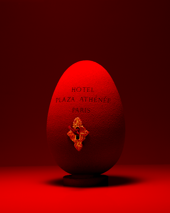 Cette composition raffinée est pensée comme un trésor gourmand, ludique et malicieux où petits et grands, en cassant l’œuf, y trouveront des clefs à croquer, promesses des secrets bien gardés du Plaza Athénée.
