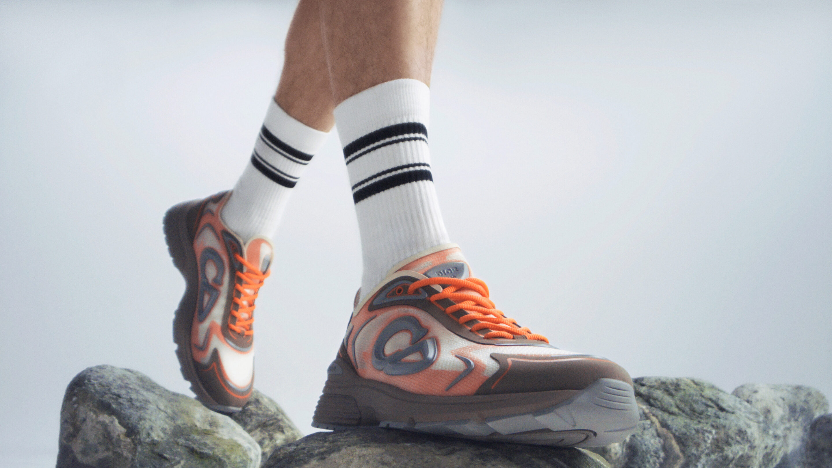 INSPIRÉES DE L’UNIVERS DU RUNNING EN MOUVEMENT, ELLES SE PARENT D’UN NYLON TECHNIQUE SEMI-TRANSPARENT – LE N3O NYLON – ASSOCIÉ À UNE MICROFIBRE MULTICOUCHE, ET SONT AGRÉMENTÉES DE DÉTAILS EN GOMME. ENTRE HÉRITAGE ET MODERNITÉ, ELLES SONT REHAUSSÉES DU LOGO « CD » – ACCOMPAGNÉ DE LA SIGNATURE « DIOR » – AU GRAPHISME AÉRODYNAMIQUE, QUI SE DÉPLOIE SUR CHAQUE CÔTÉ, AINSI QUE SUR LA SEMELLE ET LE TALON.