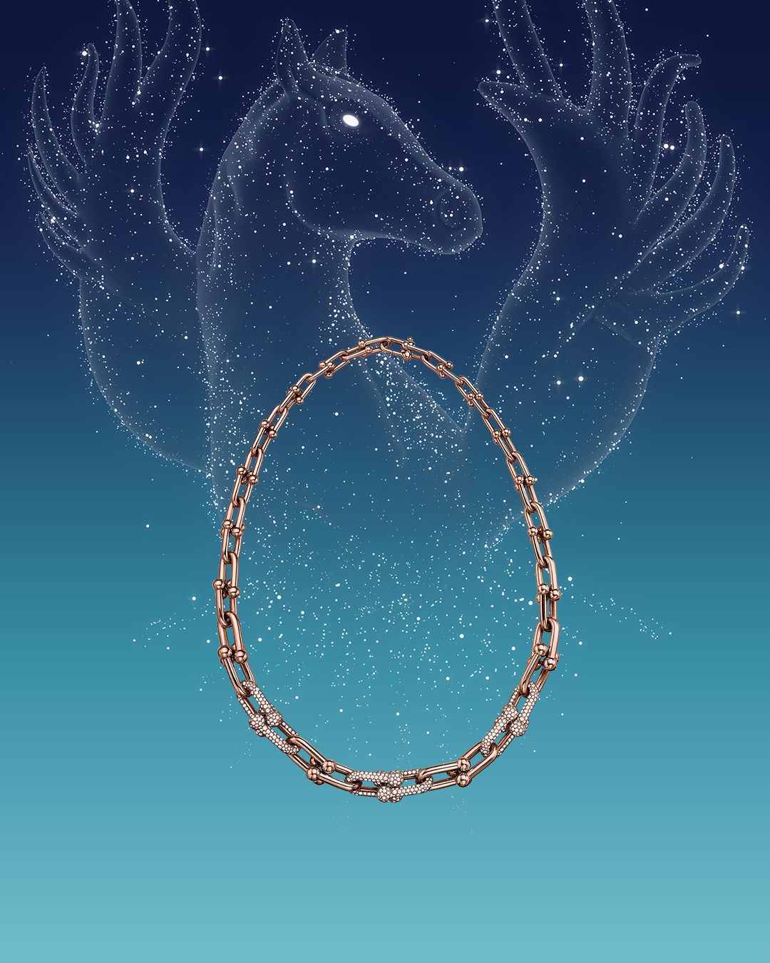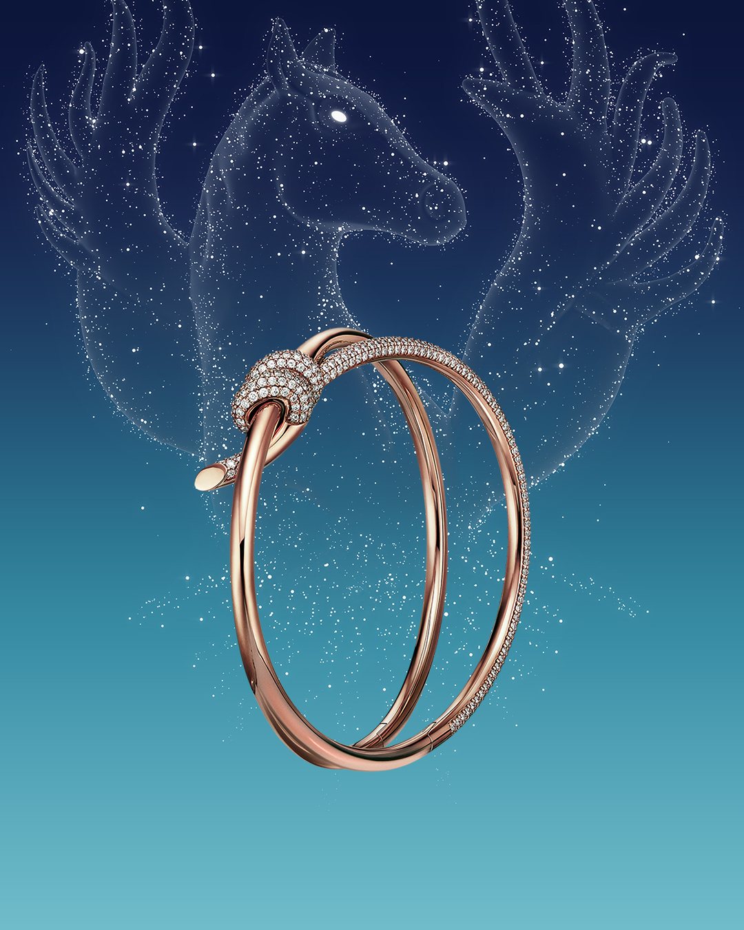 La campagne met en scène un motif Pégase inspiré d’une broche créée sous la direction artistique de Nathalie Verdeille, Directrice Artistique de la Joaillerie et de la Haute Joaillerie chez Tiffany, et puisant son inspiration dans l’univers imaginaire de Jean Schlumberger. Ce motif incarne à la fois la puissance et la grâce éthérée de cette créature mythique, offrant une expression poétique d’espoir et de dynamisme pour l’année à venir.